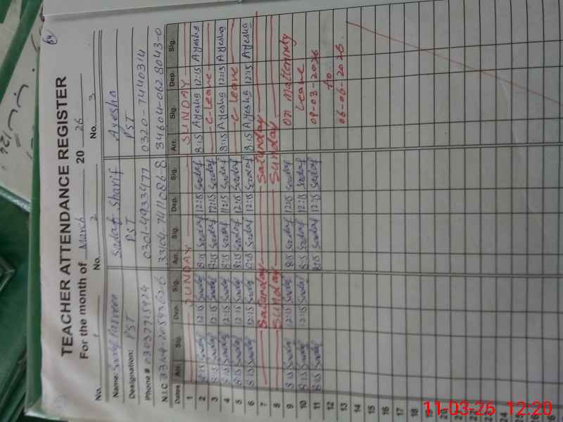 | Name: SA**** PA**** Designation: (School Headmaster's/Headmistress's) PST Phone/Cell Number: 03**** |