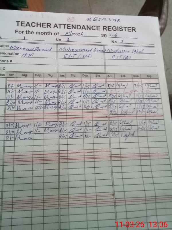 | 33**** | Ze**** Al**** Kh**** | PST Science/Maths | Regular | 0 | 0 | 0 | 0 | 0 | 0 | 0 | 0 | 0 | Exam Duty |