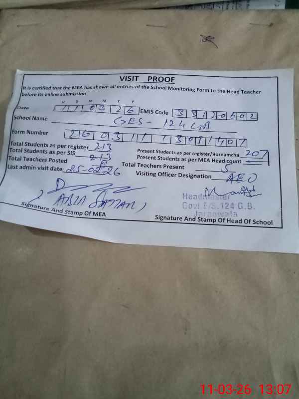 | Certified that this School was Inspected by the Undersigned MEA/DMO Today and the Information Stated Above is as Per Record. | |||||