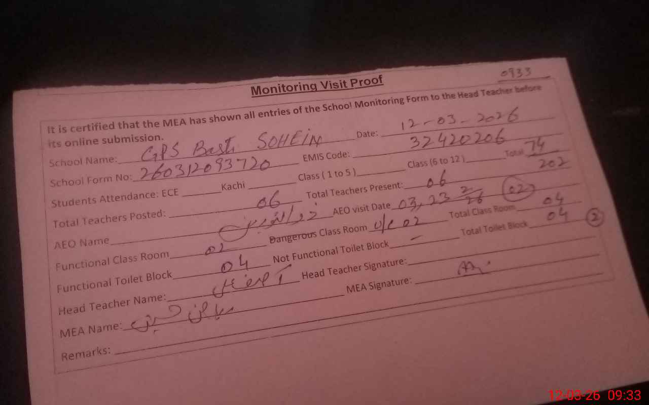 | EMIS Code: 32420206 | Name of School: GPS BASTI SOHEIN | |||
