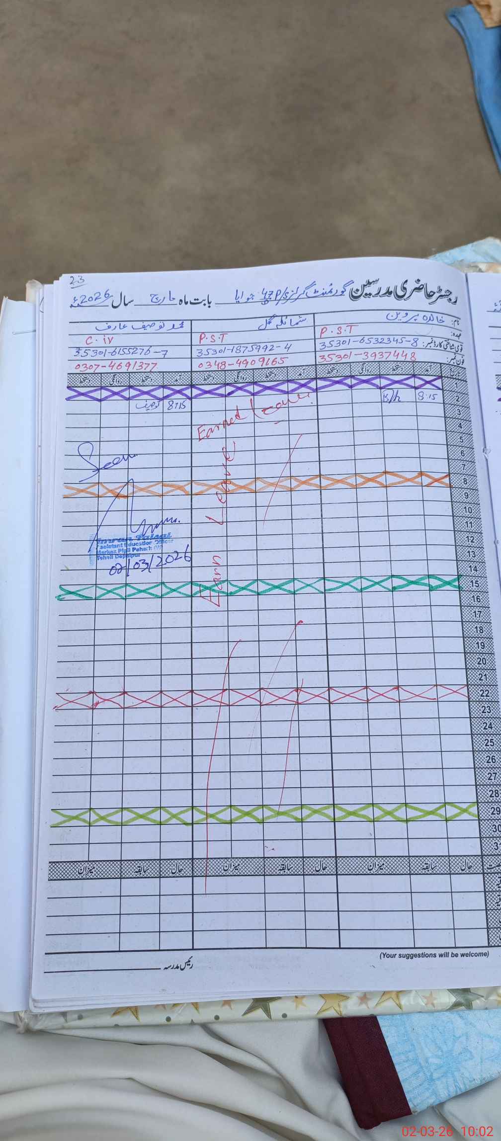 | Name: KA**** AK**** Designation: (School Headmaster's/Headmistress's) PST Phone/Cell Number: 03**** |