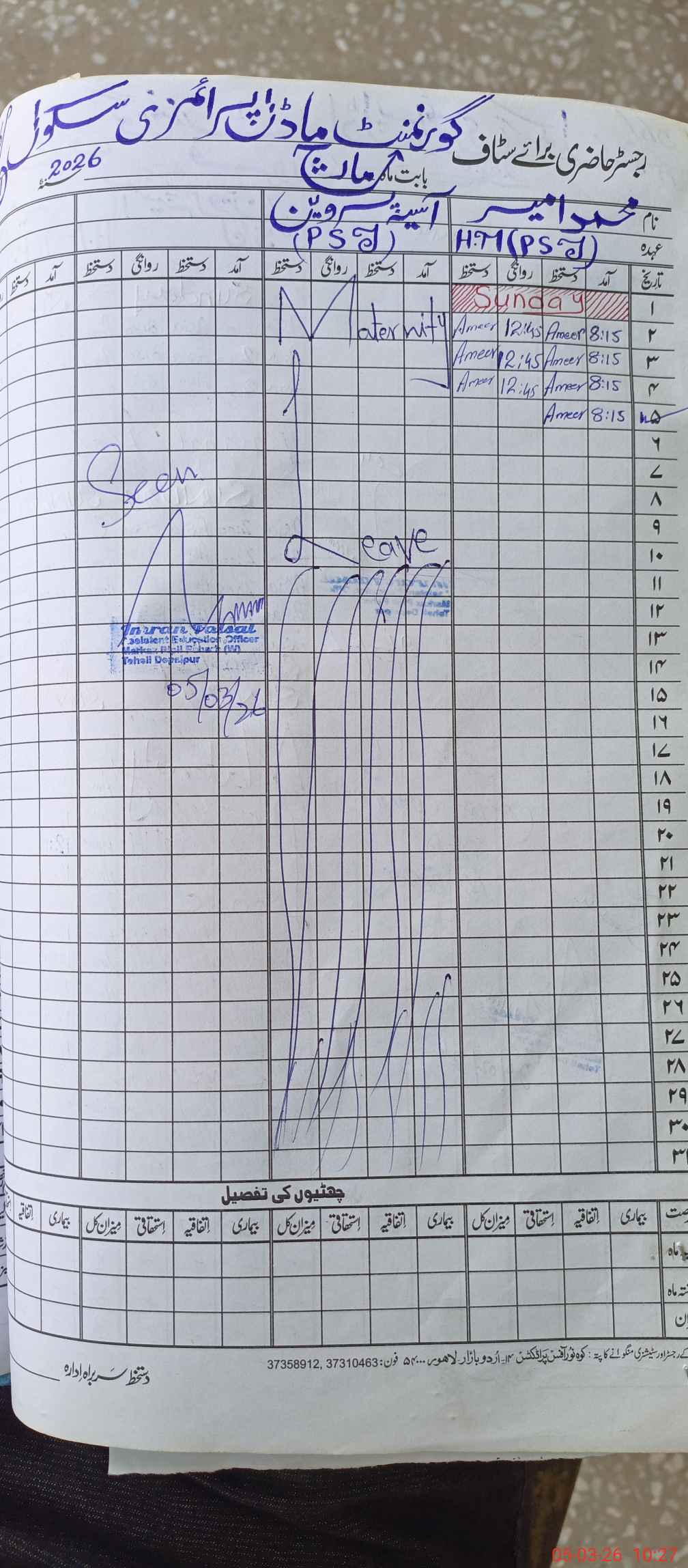 | Name: MU**** AM**** Designation: (School Headmaster's/Headmistress's) PST Phone/Cell Number: 03**** |