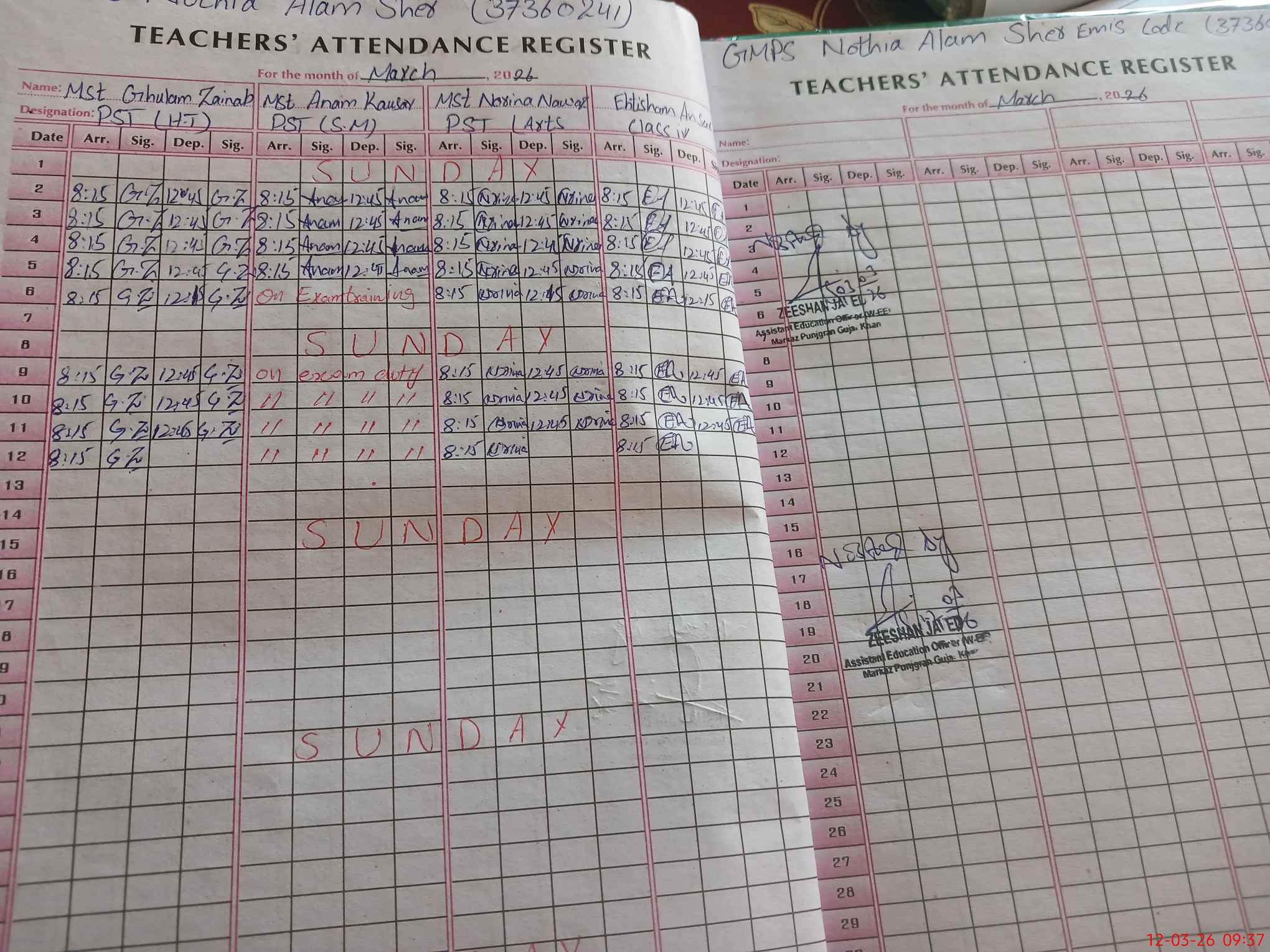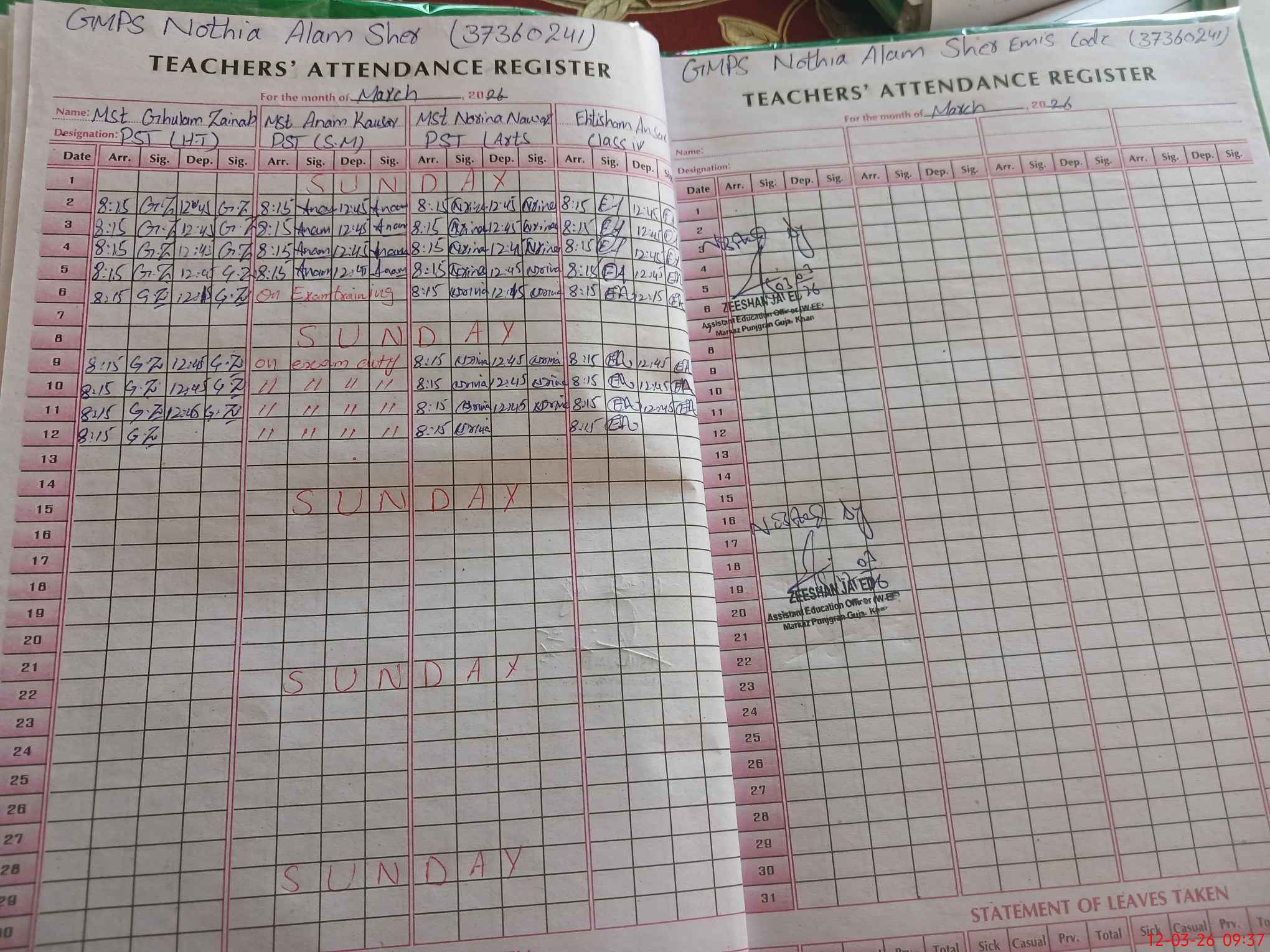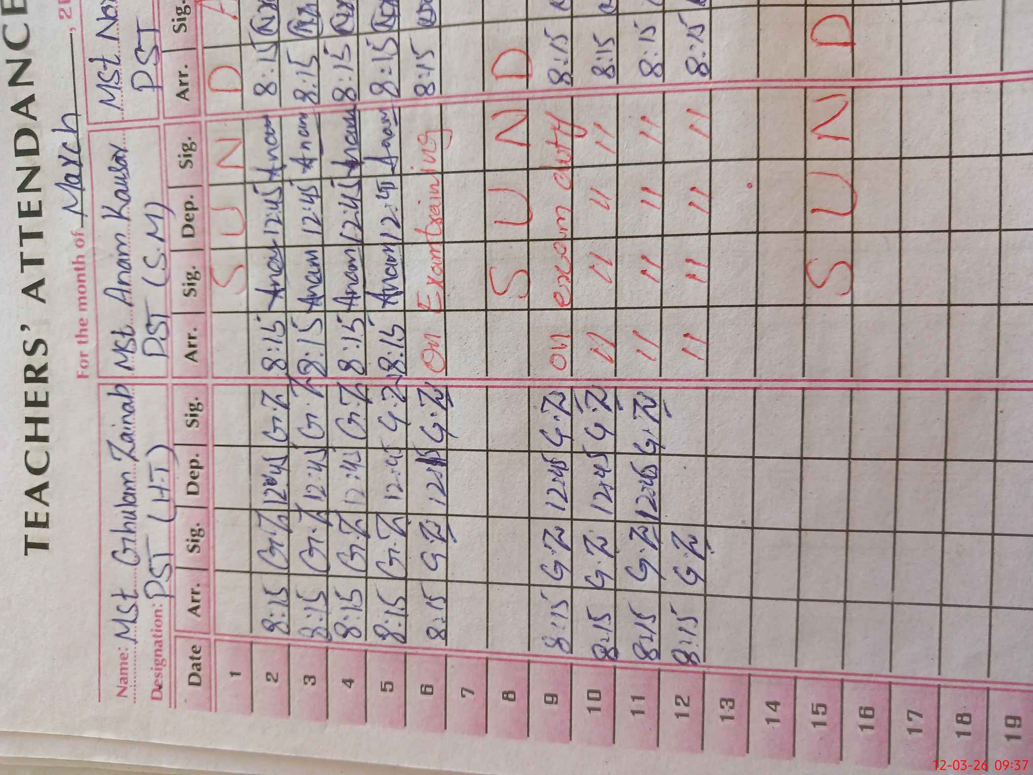 | 37**** | An**** Ko**** | PST Science/Maths | Regular | 0 | 0 | 0 | 0 | 0 | 0 | 0 | 0 | 0 | Exam Duty |
