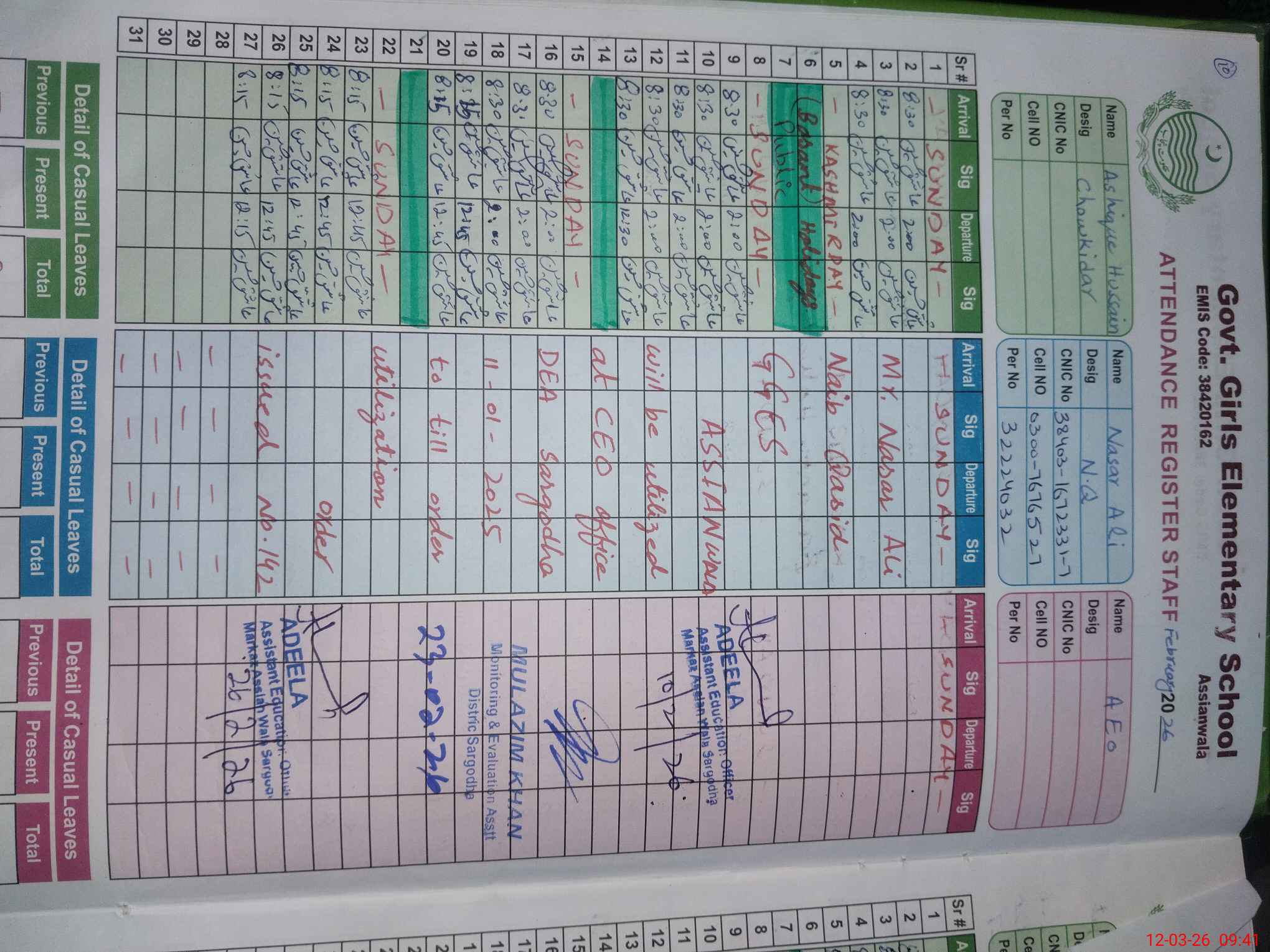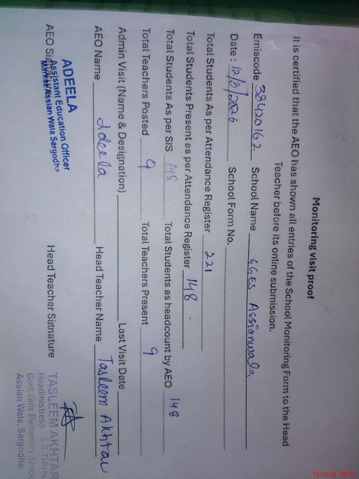 | EMIS Code: 38420162 | Name of School: GGES ASSIAN WALA | |||