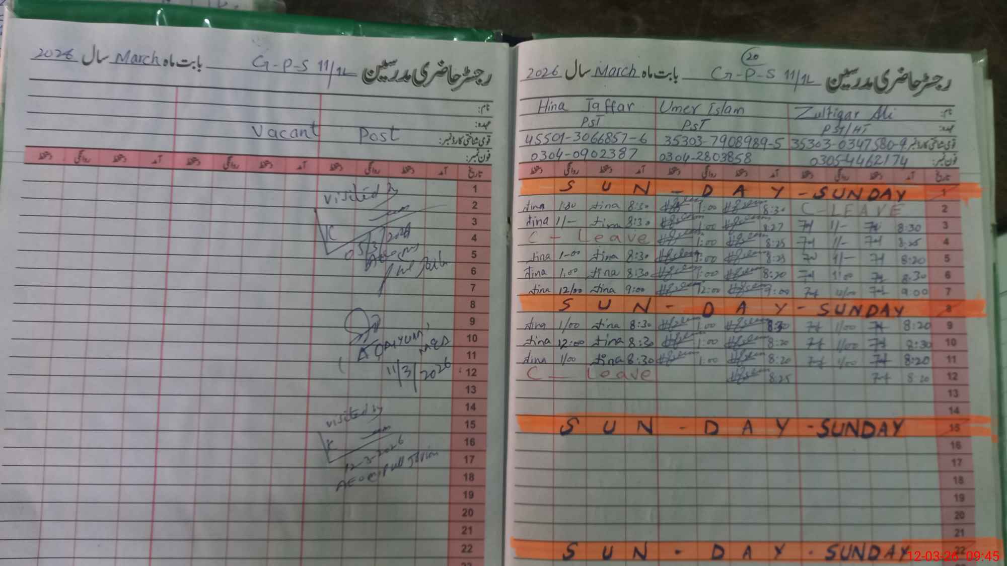 | Name: ZU**** AL**** Designation: (School Headmaster's/Headmistress's) PST Phone/Cell Number: 03**** |