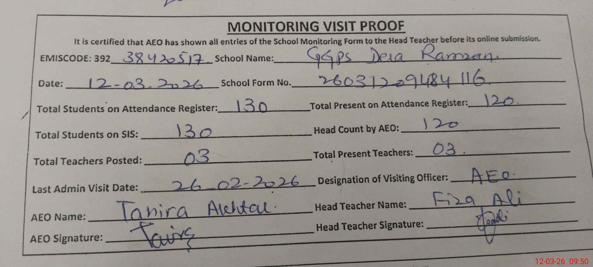 | EMIS Code: 38420517 | Name of School: GGPS DERA RAMZAN | |||