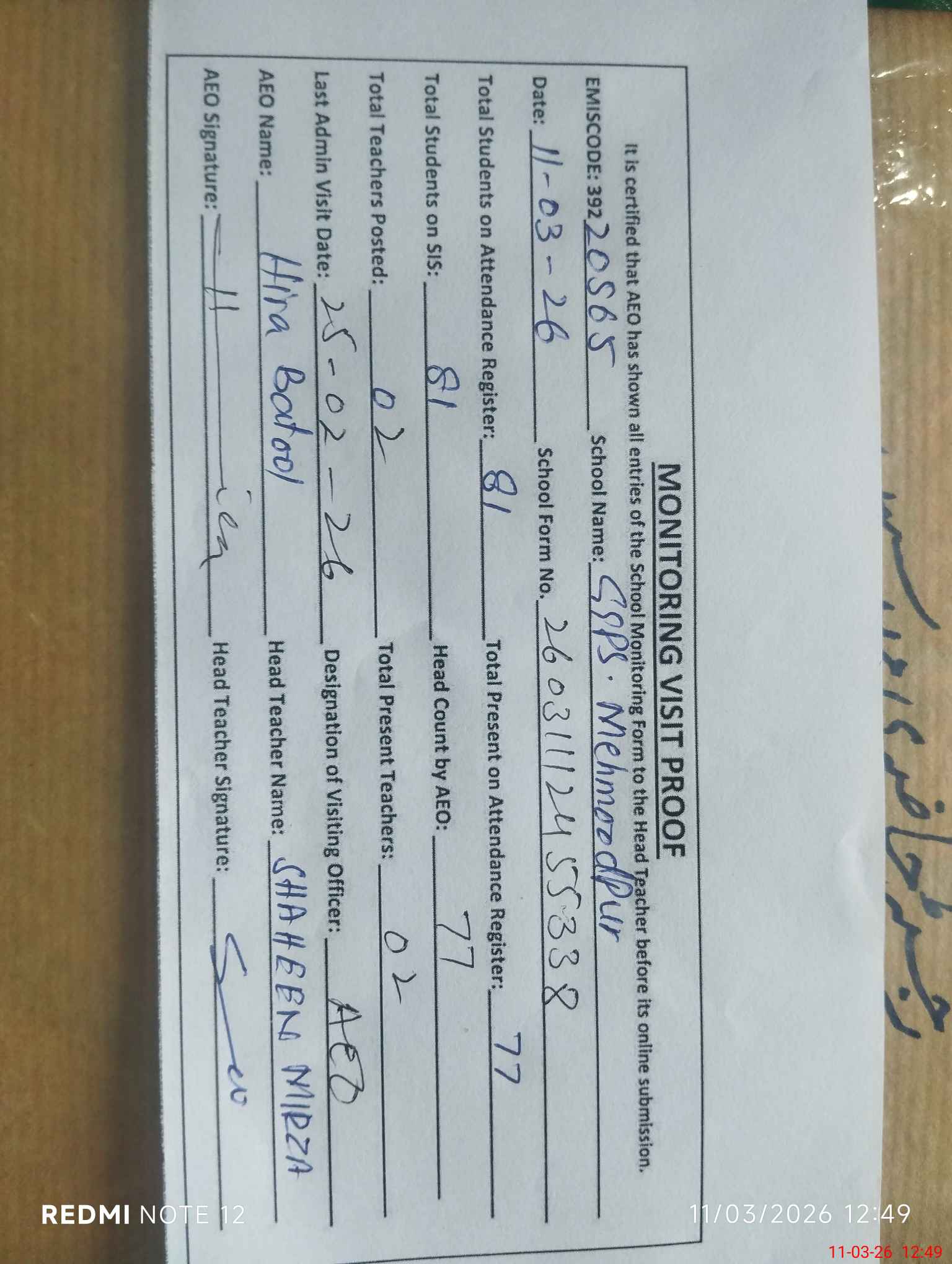 | EMIS Code: 39220565 | Name of School: GGPS MEHMOOD PUR | |||