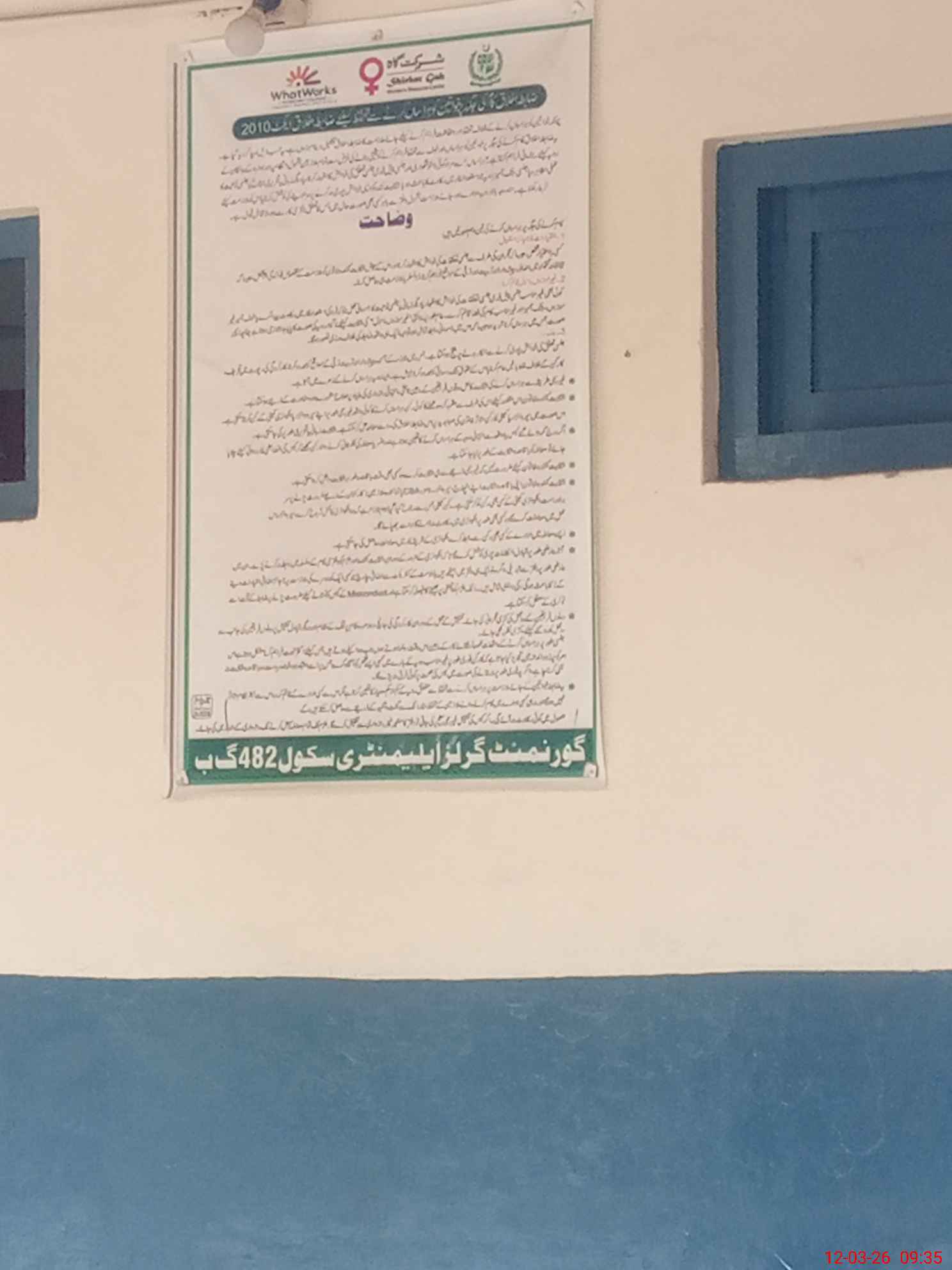 | EMIS Code: 33130337 | Name of School: GGES CHAK NO.482/GB | |||