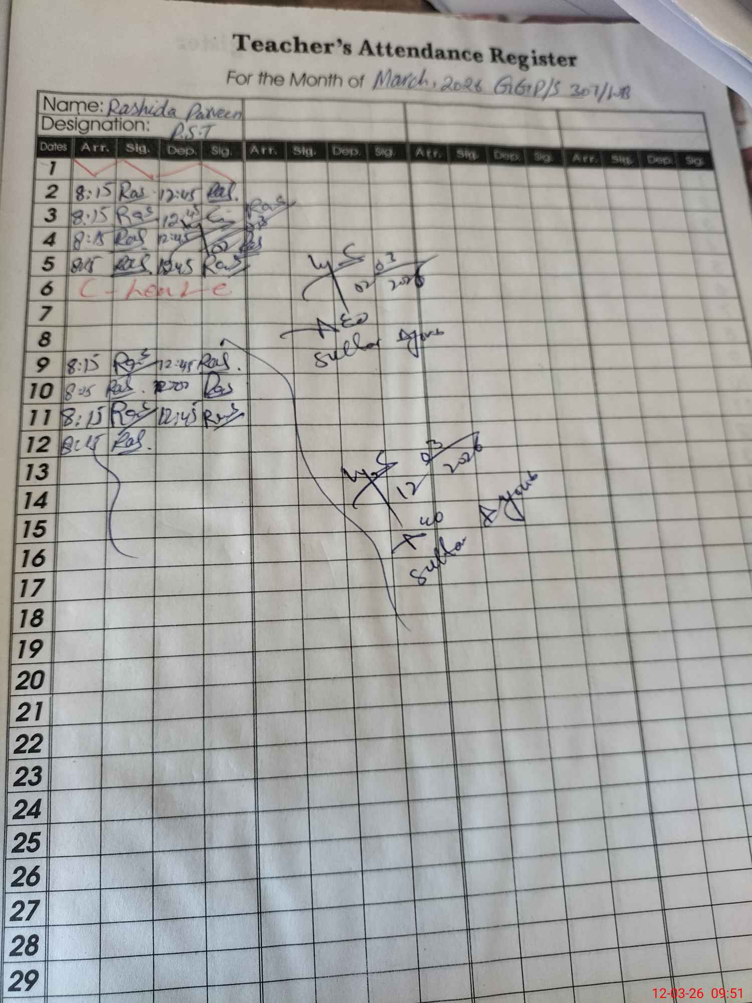 | Monitoring Date: 12-03-2026 | Start Time: 12-03-2026 09:28 AM | End Time: 12-03-2026 09:54 AM | Name of MEA: Sh**** Ya**** | |