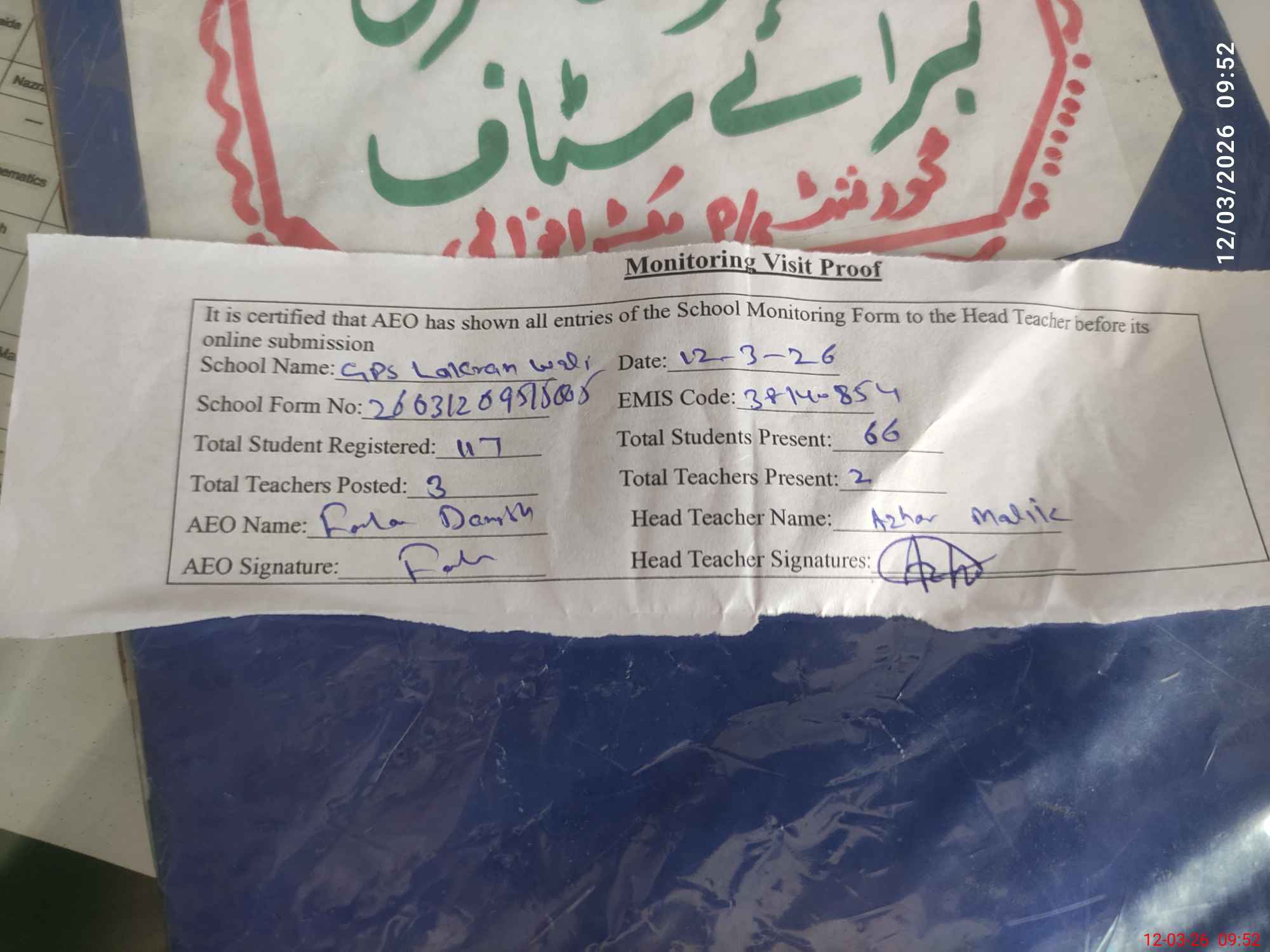 | EMIS Code: 38140854 | Name of School: GPS LAKRAN WALI | |||