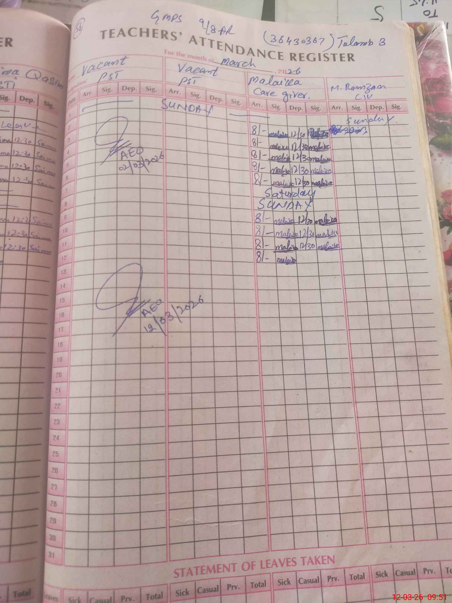 | Name: KH**** DU**** Designation: (School Headmaster's/Headmistress's) PST/PTC/JV Phone/Cell Number: 03**** |