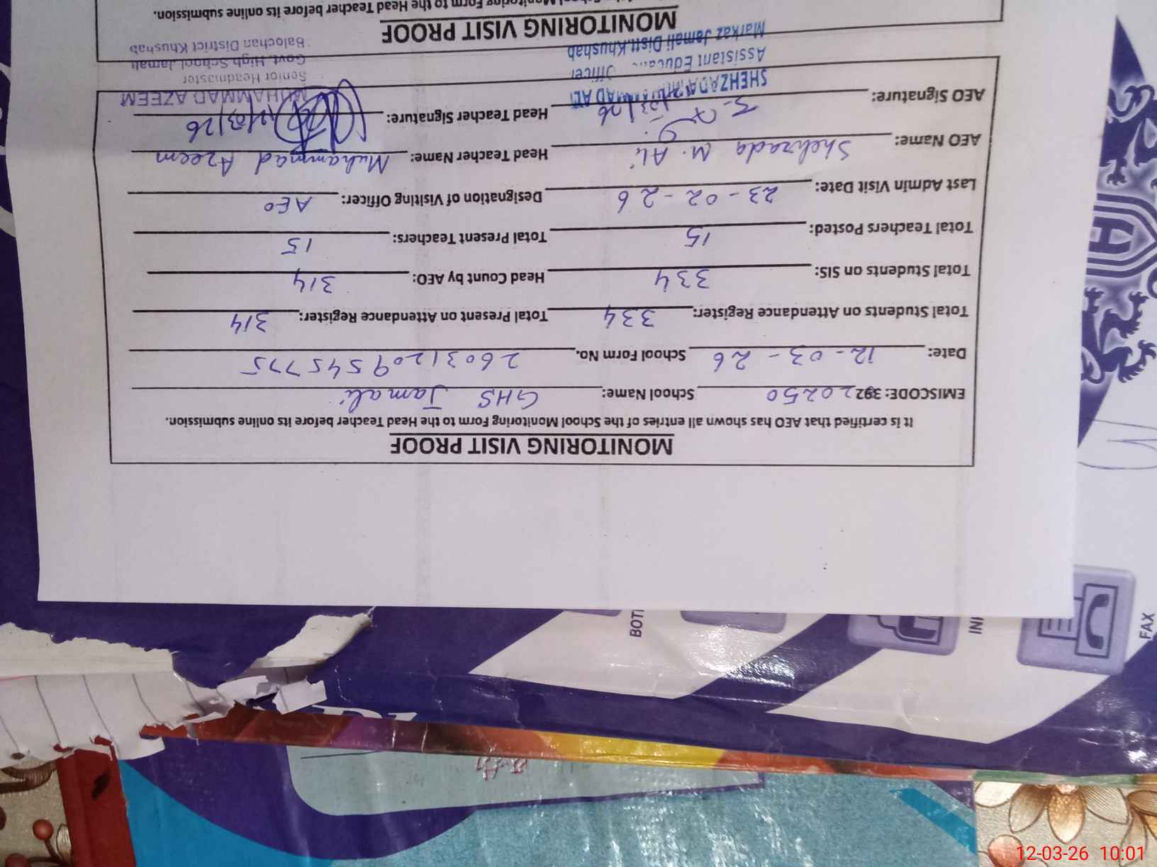 | EMIS Code: 38220250 | Name of School: GHS JAMALI | |||