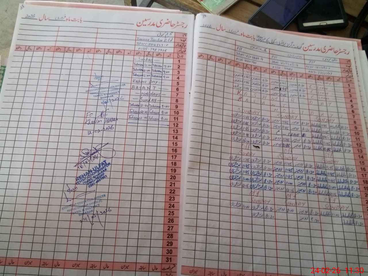 | Name: KH**** PE**** Designation: (School Headmaster's/Headmistress's) PST Phone/Cell Number: 03**** |