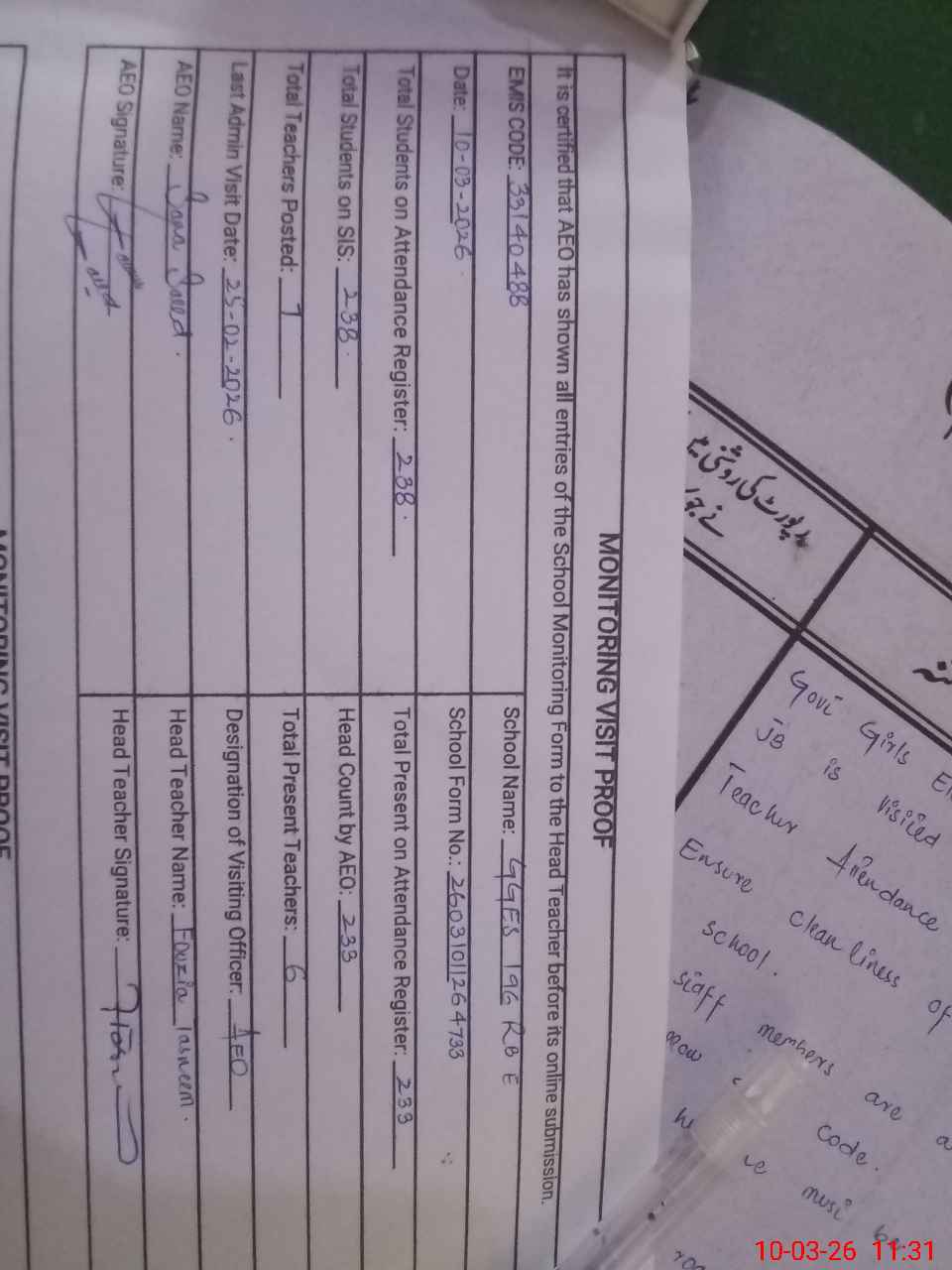 | EMIS Code: 33140488 | Name of School: GGES CHAK 108 JB | |||