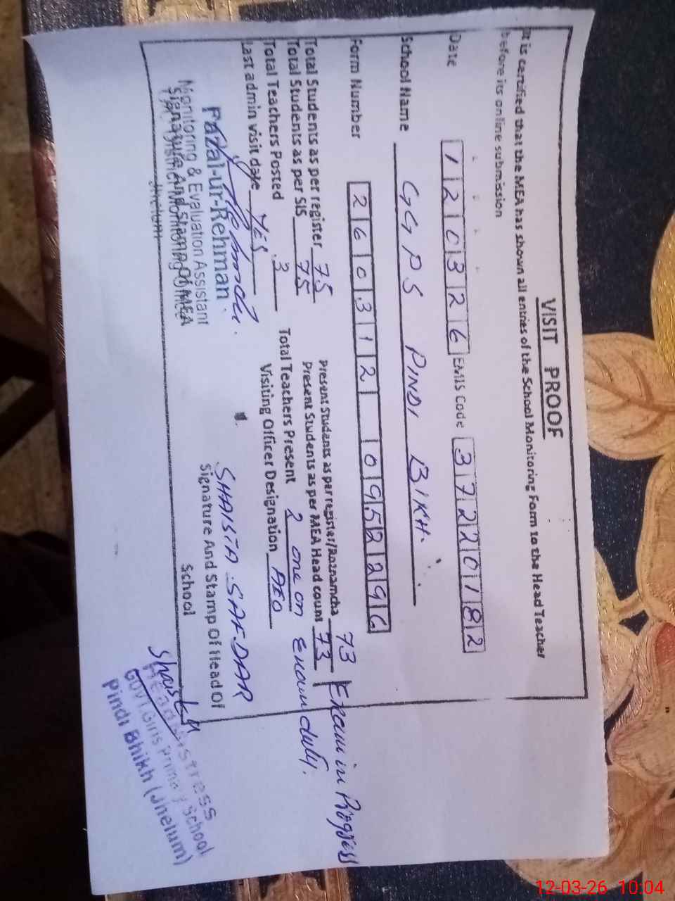 | EMIS Code: 37220182 | Name of School: GGPS PINDI BIKH | |||