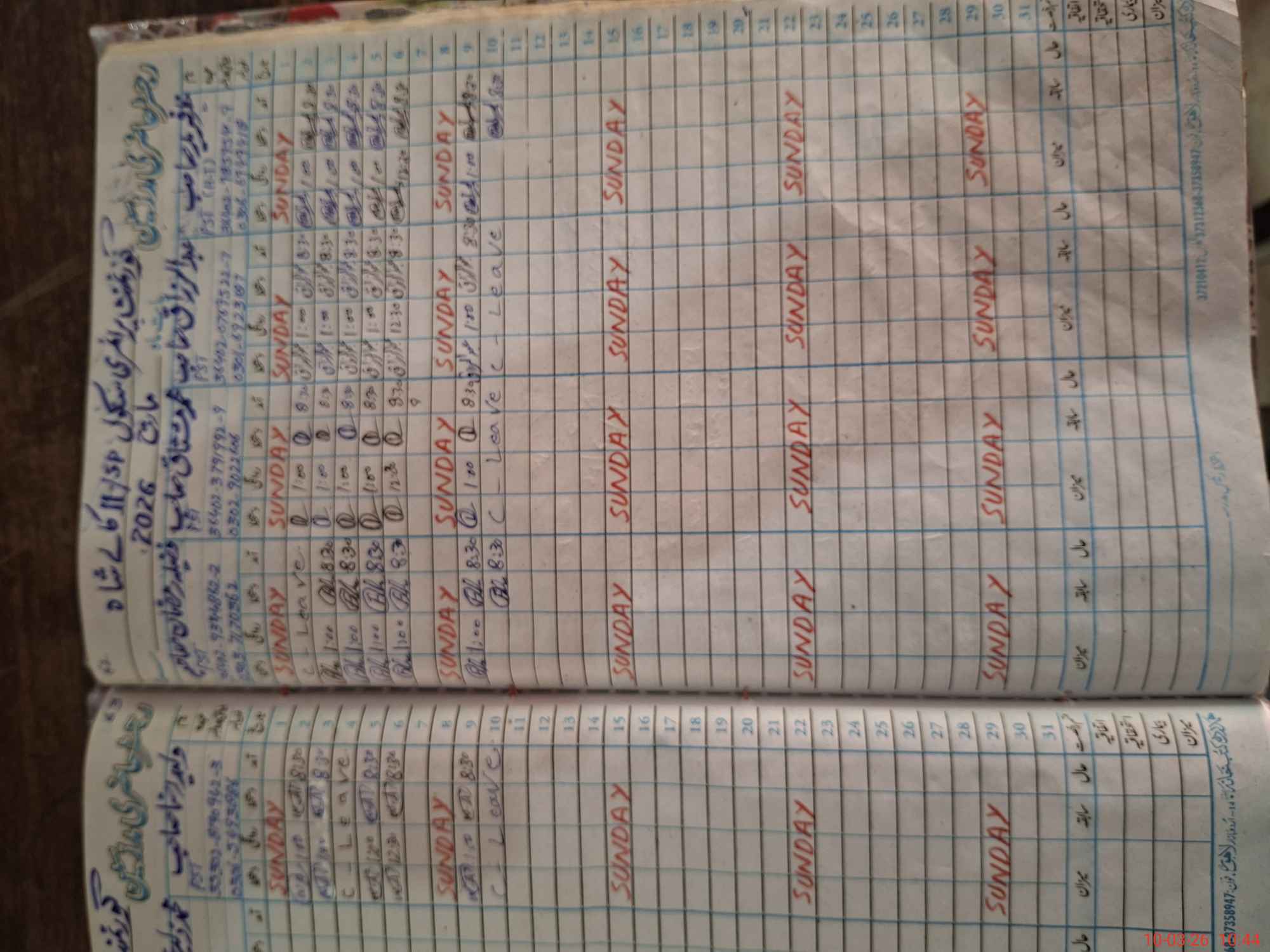 | Leave | Duty | Absent | Maternity | Medical | Ex- Pak |