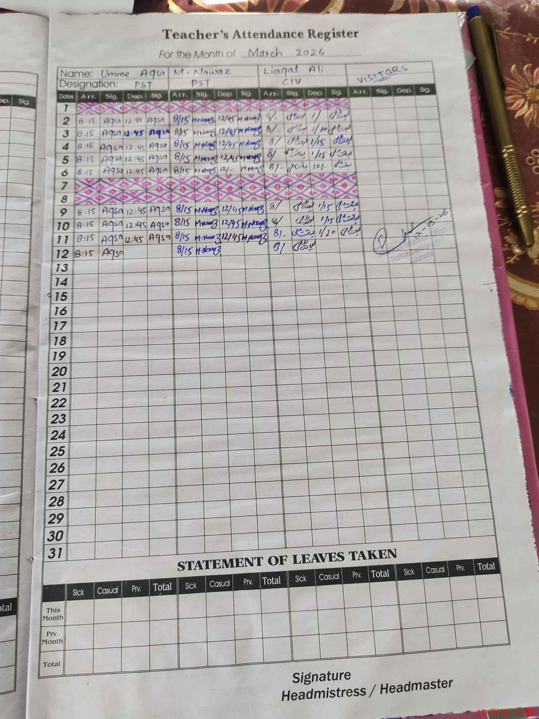 | Attendance Register | Head Teacher | MEA with School | Visit Proof |
