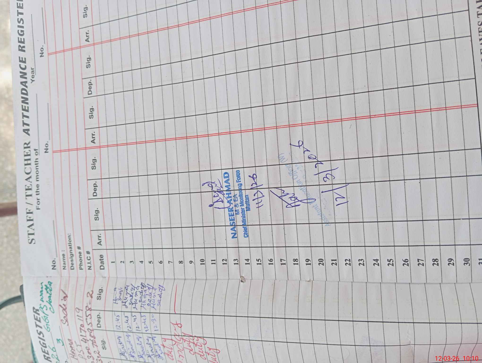 | Name: Mu**** Na**** Designation: (School Headmaster's/Headmistress's) HEADMASTER Phone/Cell Number: 03**** |