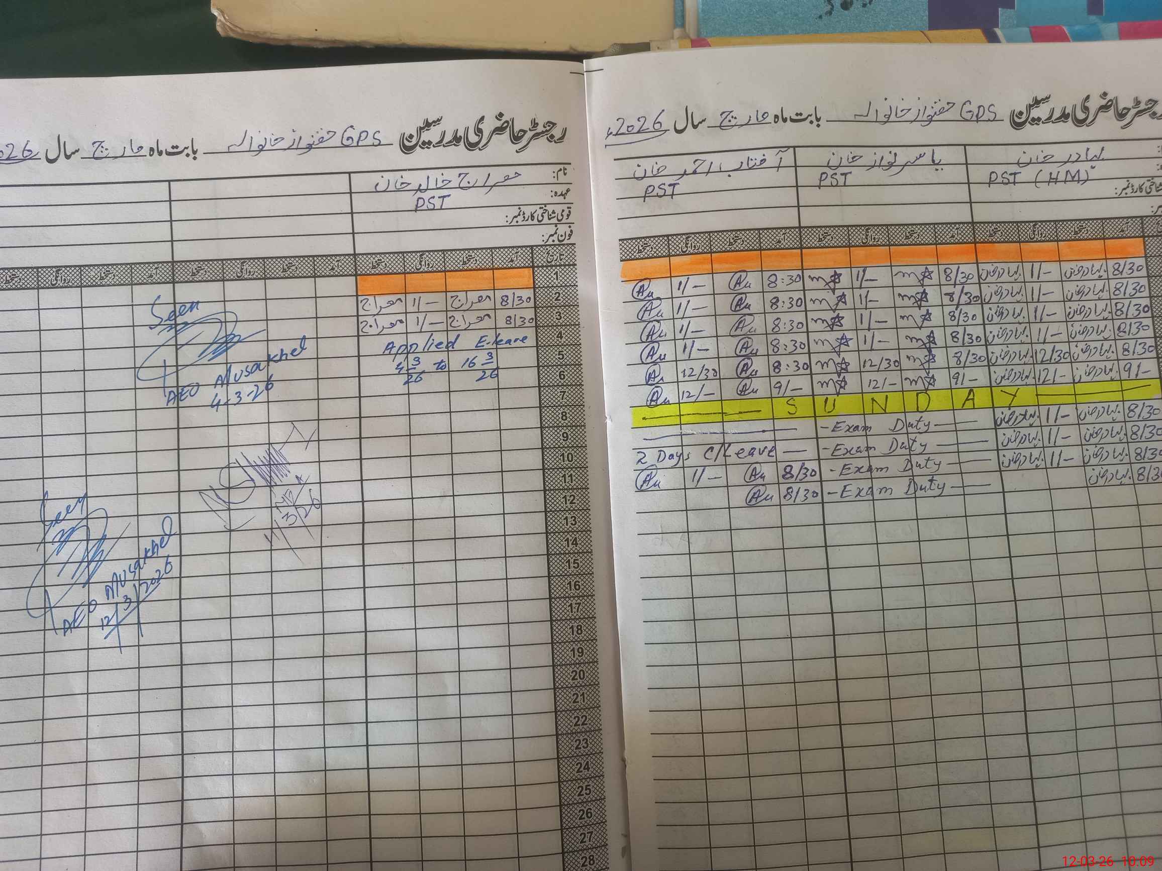 | 38**** | Ya**** Na**** Kh**** | PST Science/Maths | Regular | 0 | 0 | 0 | 0 | 0 | 0 | 0 | 0 | 0 | Exam Duty |