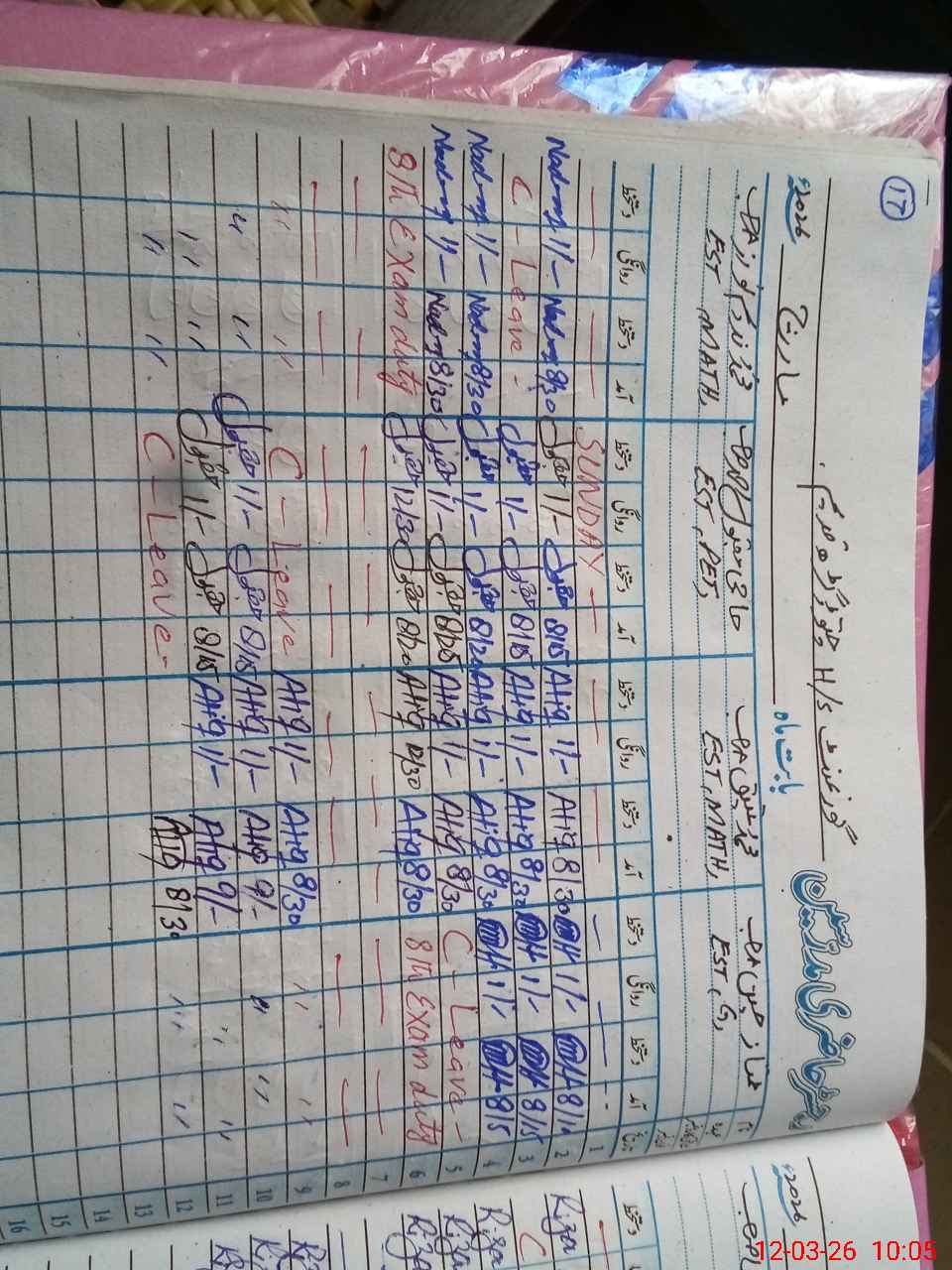 | 36**** | Mu**** Na**** Na**** | EST Maths | Regular | 0 | 2 | 0 | 0 | 0 | 0 | 0 | 0 | 0 | Exam Duty |