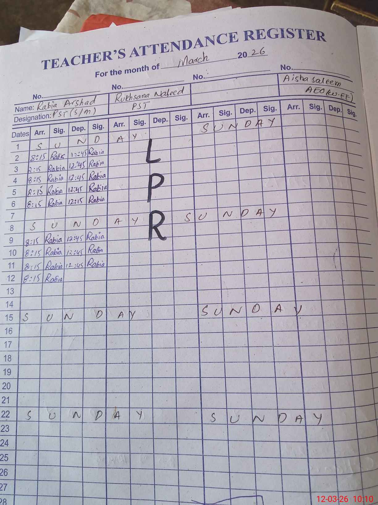 | Name: RA**** AR**** Designation: (School Headmaster's/Headmistress's) PST (SCI MATH) Phone/Cell Number: 03**** |
