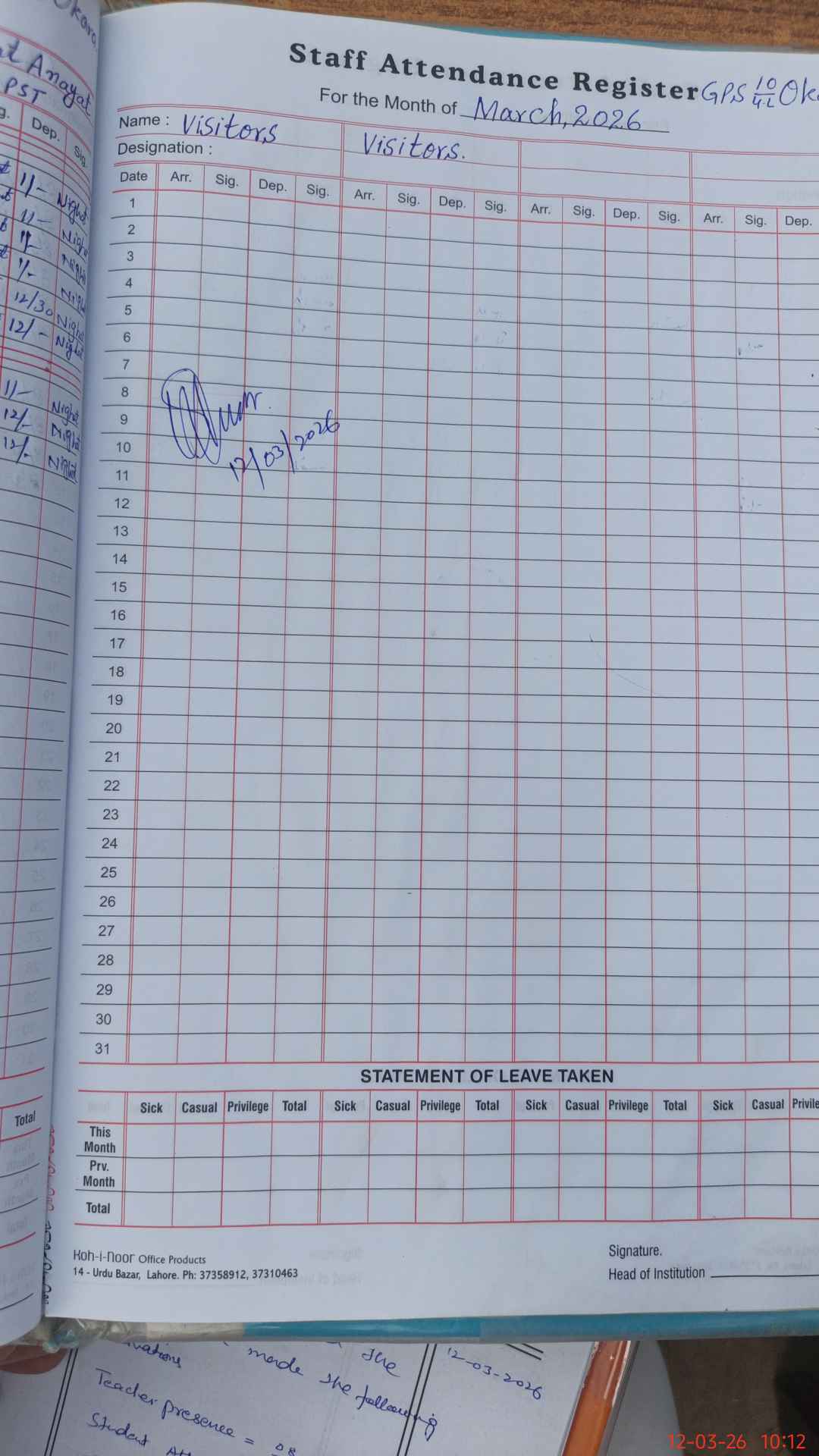 | Attendance Register | Head Teacher | MEA with School | Visit Proof |