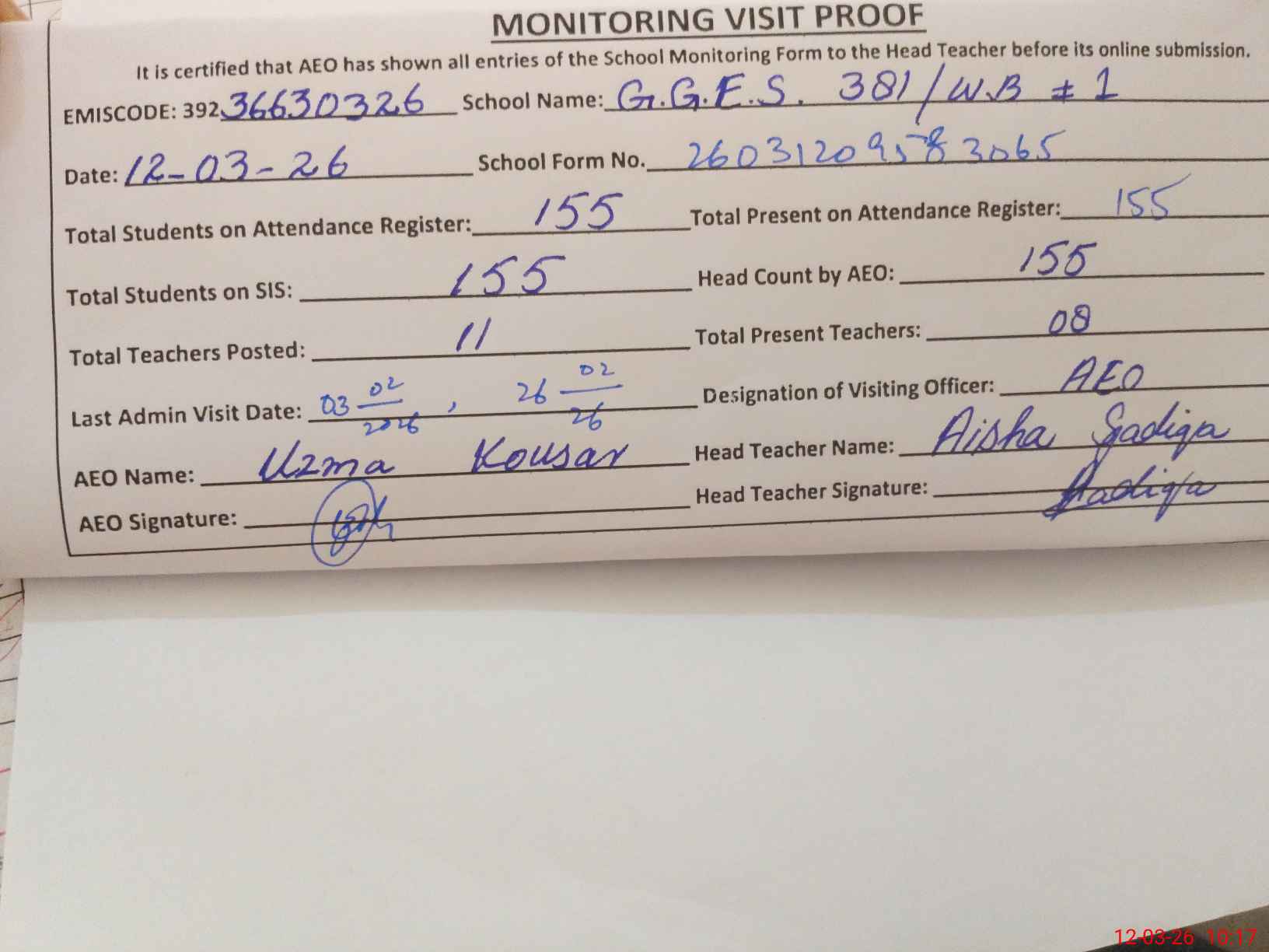 | Monitoring Date: 12-03-2026 | Start Time: 12-03-2026 09:58 AM | End Time: 12-03-2026 10:18 AM | Name of MEA: Uz**** Ko**** | |