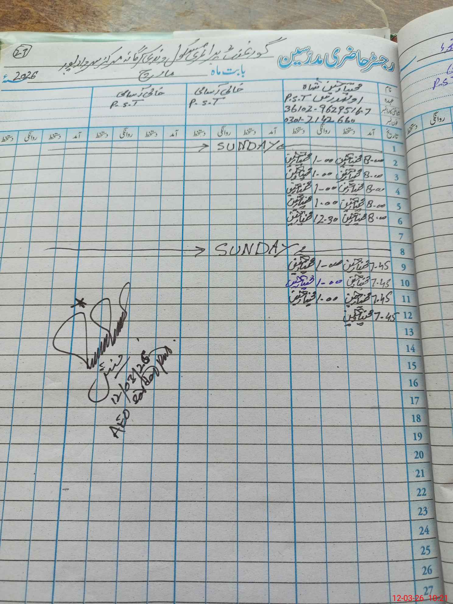 | Name: Mu**** Hu**** Sh**** Designation: (School Headmaster's/Headmistress's) PTC/JV Phone/Cell Number: 03**** |