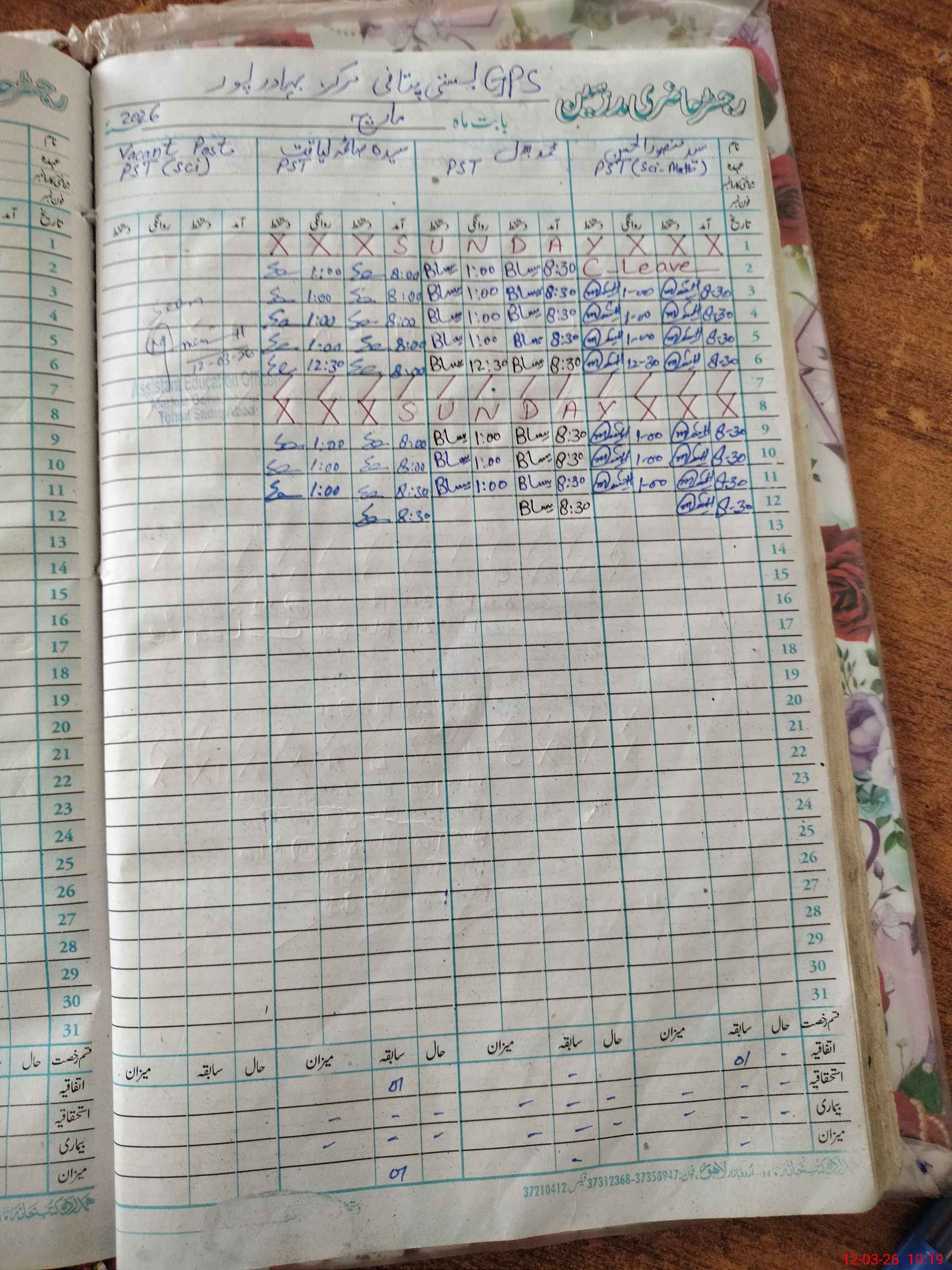 | Name: Ma**** Ul**** Designation: (School Headmaster's/Headmistress's) PST Phone/Cell Number: 03**** |