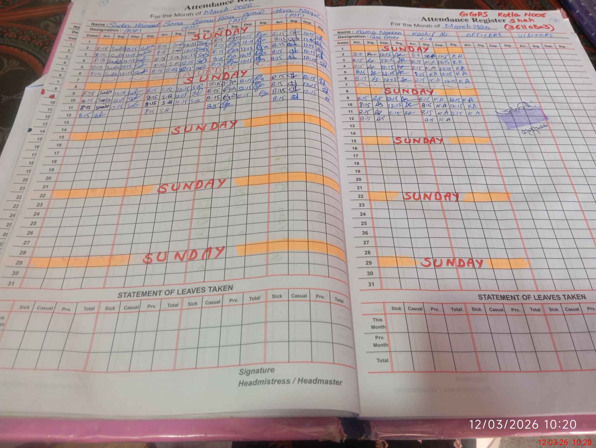 | 36**** | Bu**** Na**** | PST Arts | Regular | 0 | 0 | 0 | 0 | 0 | 0 | 0 | 0 | 0 | Exam Duty |