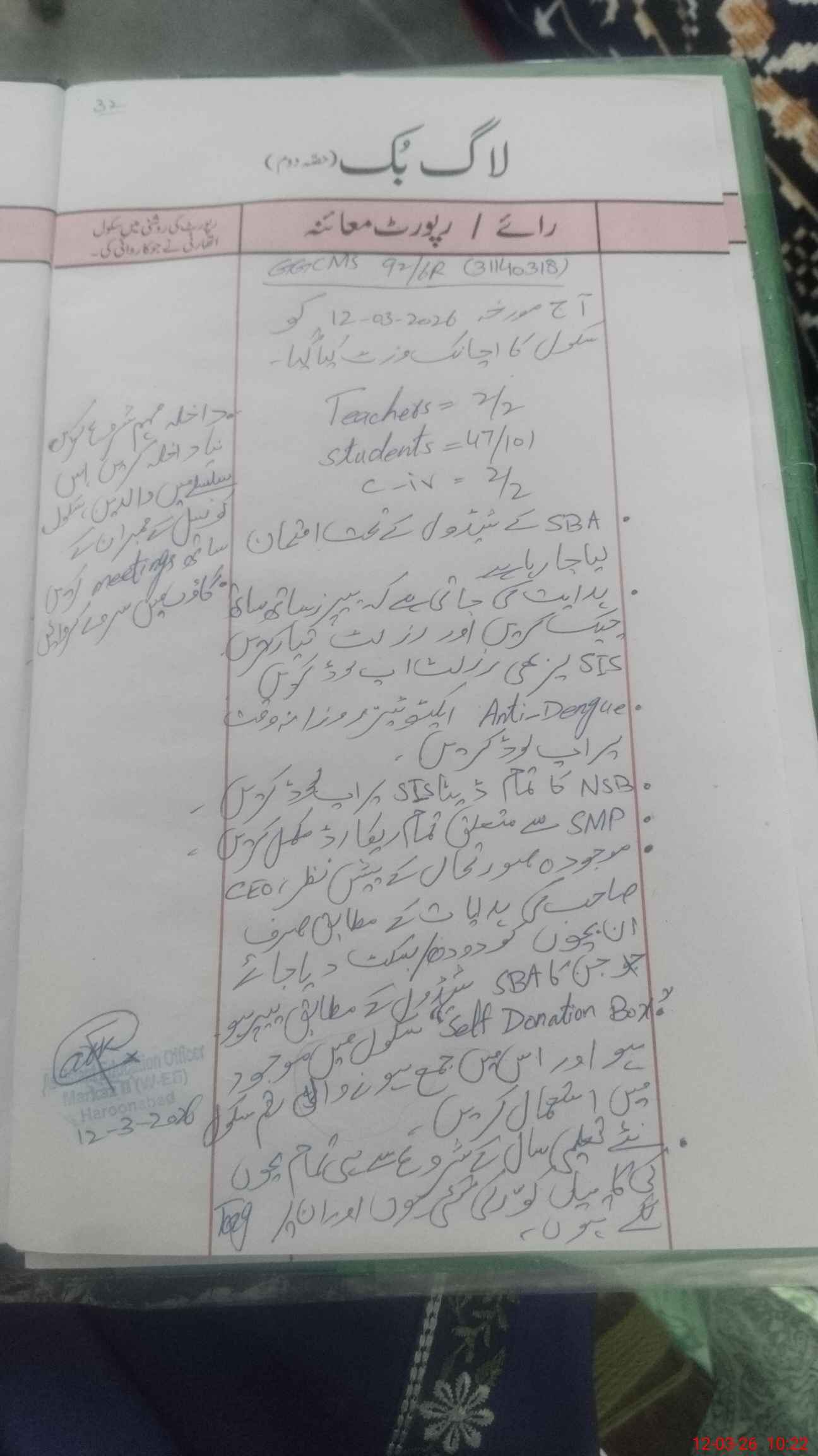 | EMIS Code: 31140318 | Name of School: GGCMS 92/6-R HAROON ABAD | |||