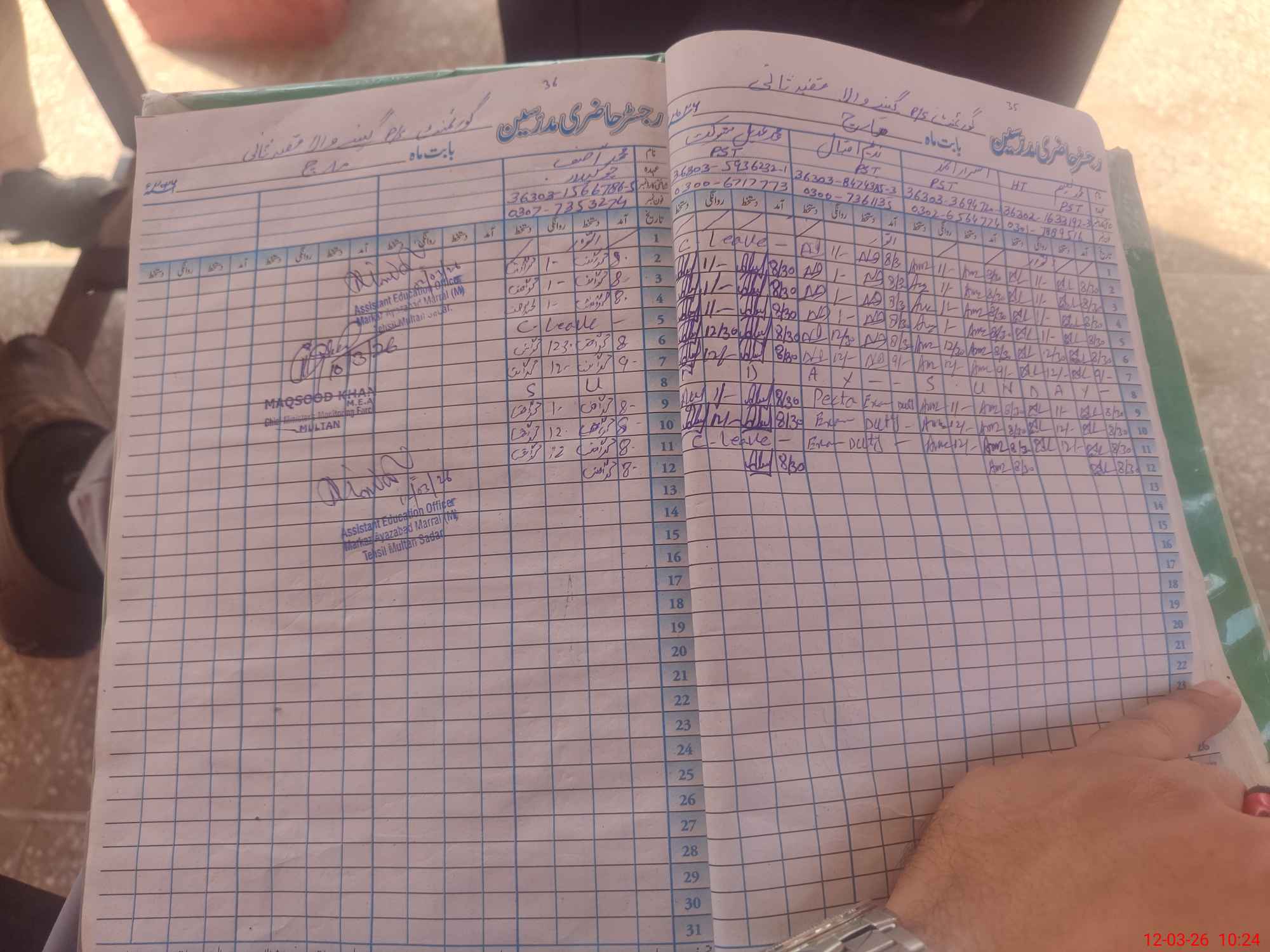 | Name: MNA**** Designation: (School Headmaster's/Headmistress's) PST/PTC/JV Phone/Cell Number: 03**** |