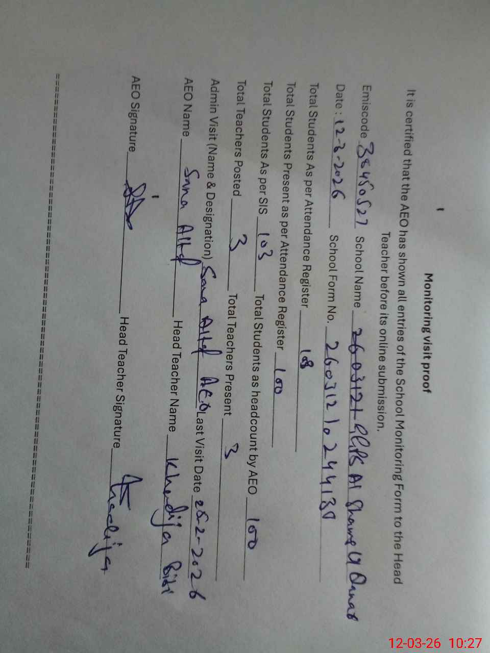 | EMIS Code: 38450527 | Name of School: GGPS AL-SHAMAS-UL-QAMAR (NEW NAME) | |||