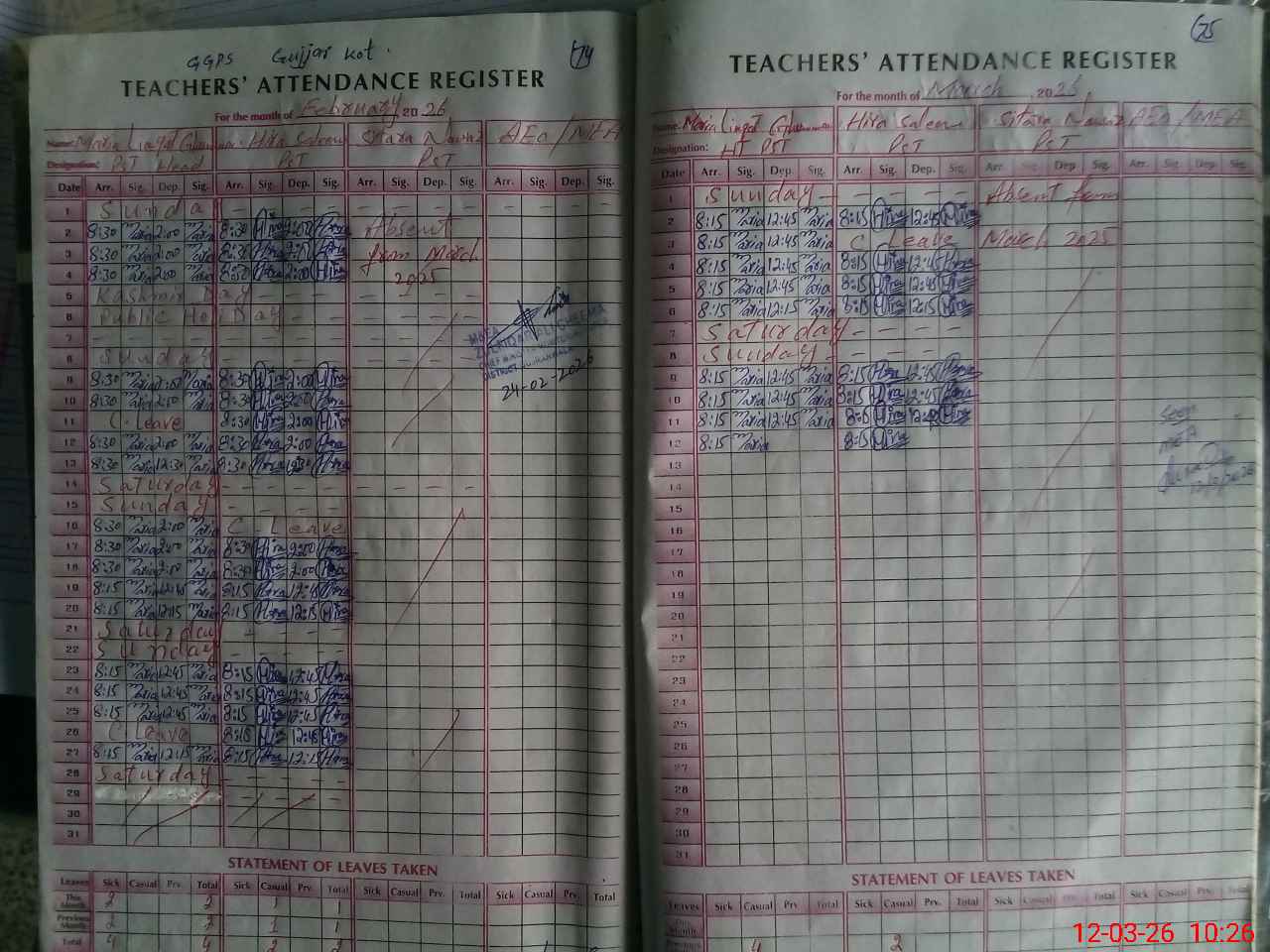 | EMIS Code: 34120352 | Name of School: GGPS GUJAR KOT | |||