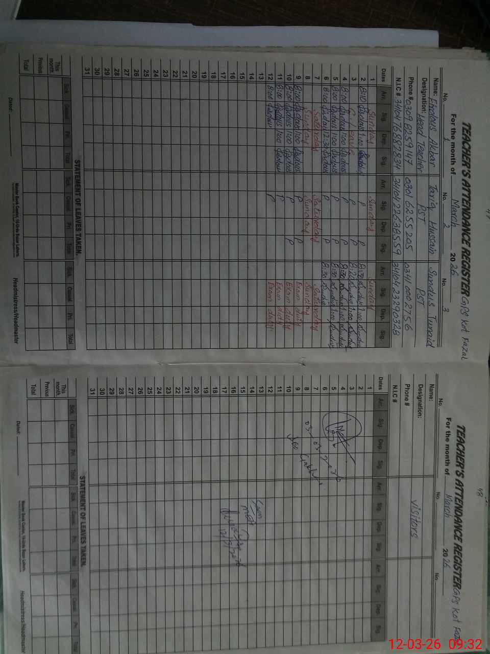 | Name: FI**** AK**** Designation: (School Headmaster's/Headmistress's) PST Phone/Cell Number: 03**** |