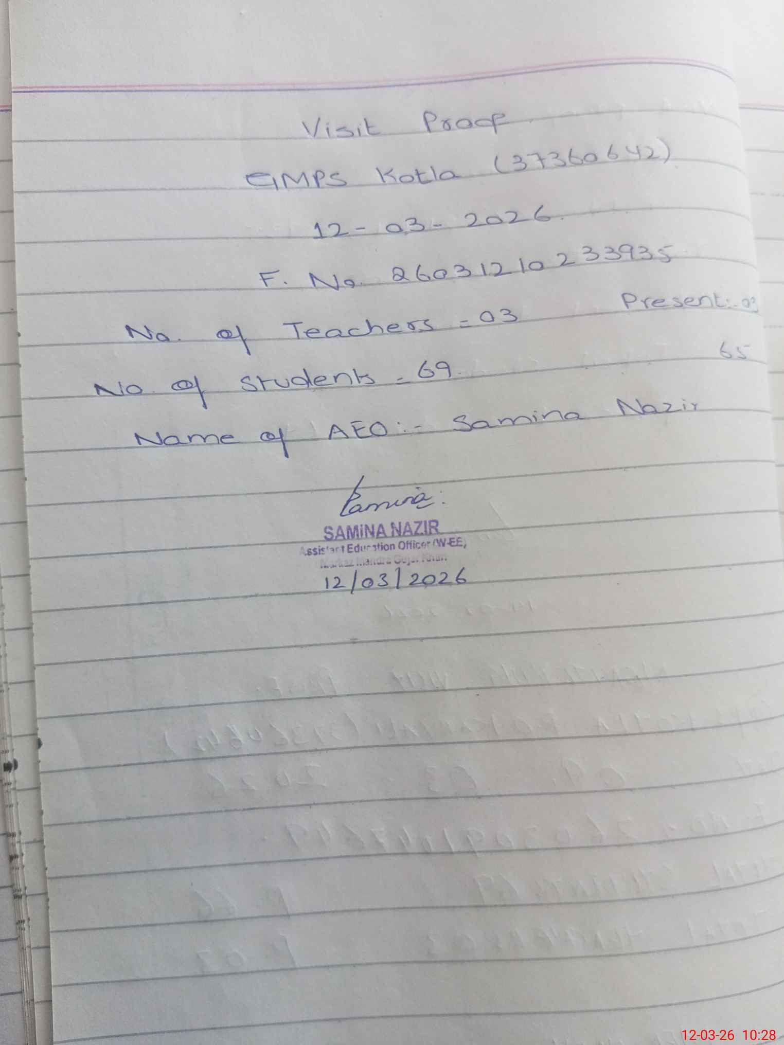 | EMIS Code: 37360642 | Name of School: GMPS KOTLA P.O KARNALI | |||