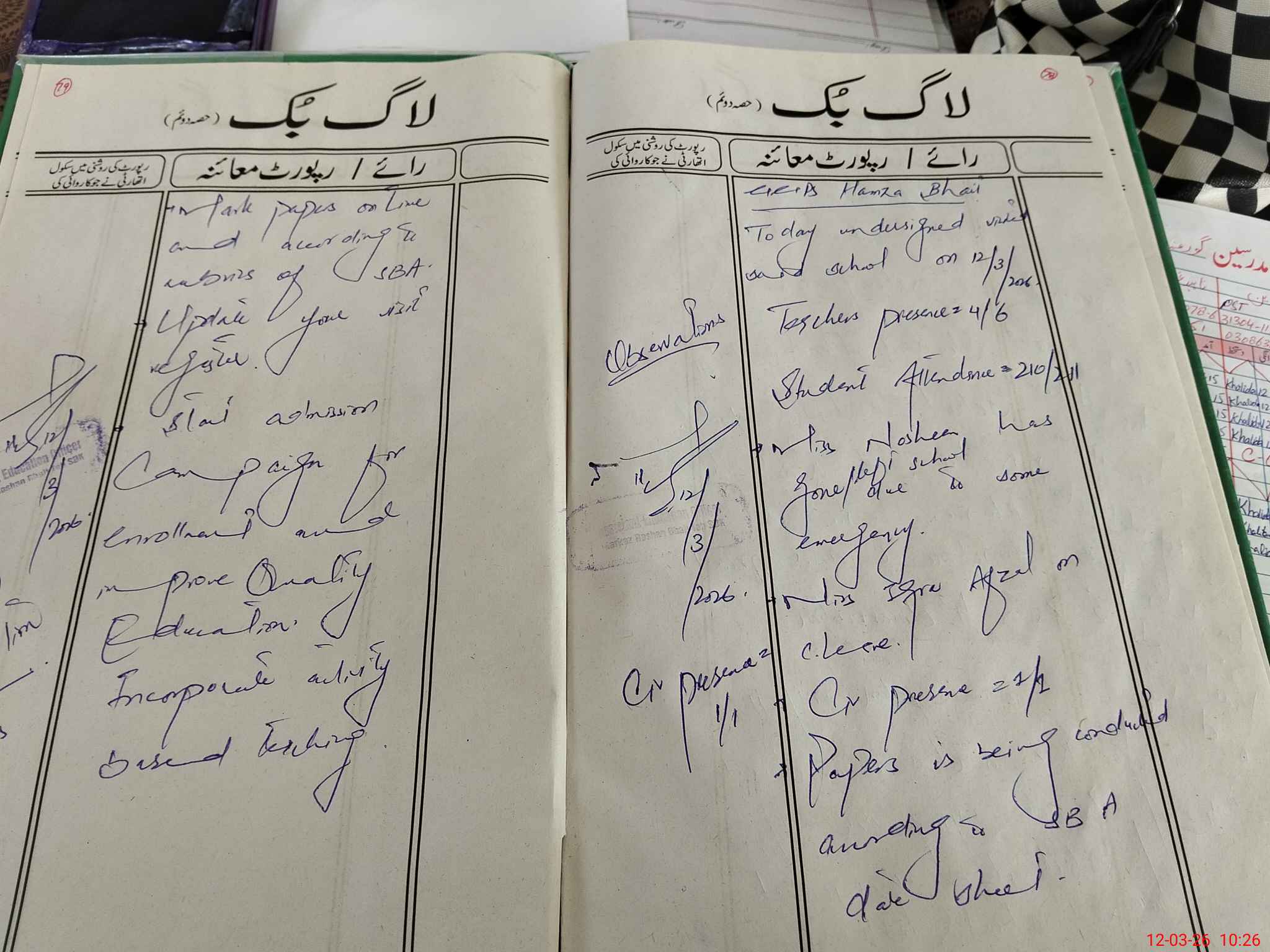 | Name: Kh**** Pe**** Designation: (School Headmaster's/Headmistress's) PST/PTC/JV Phone/Cell Number: 03**** |