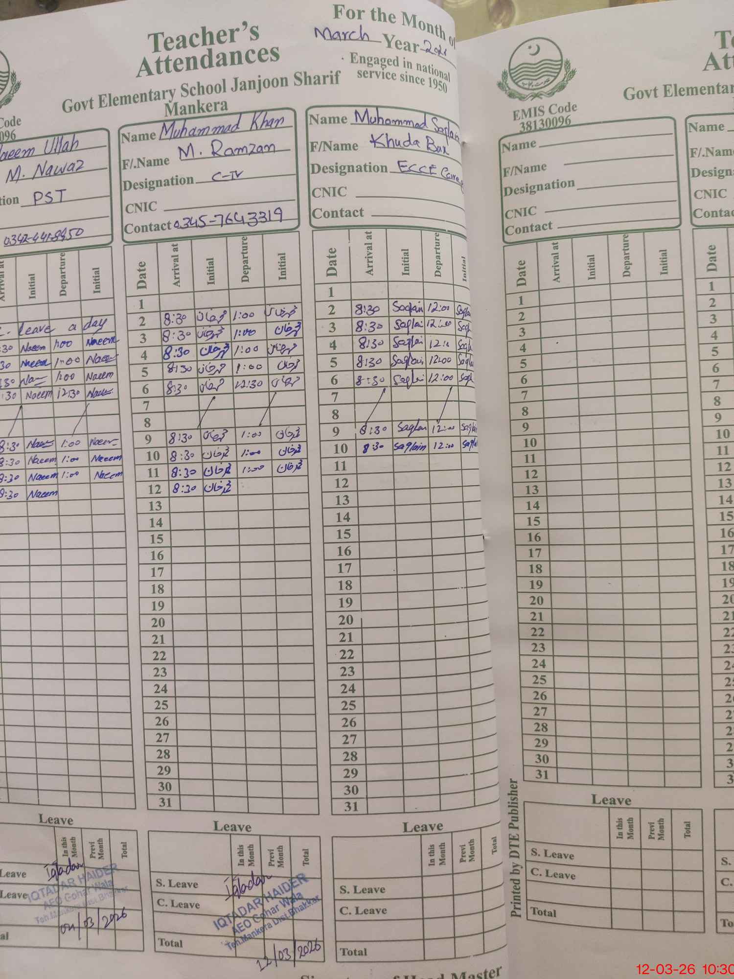 | Name: Sh**** Al**** Designation: (School Headmaster's/Headmistress's) S S T Phone/Cell Number: 03**** |