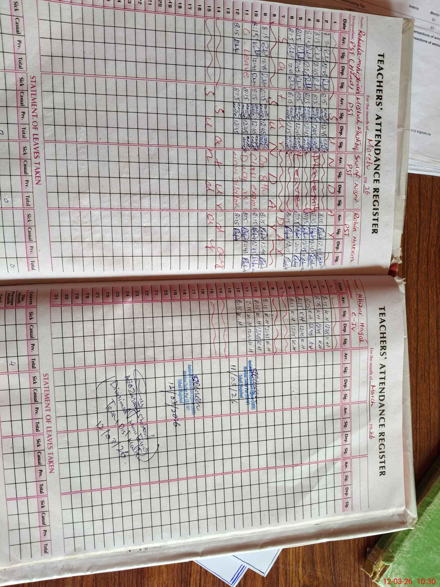 | Attendance Register | Head Teacher | MEA with School | Visit Proof |