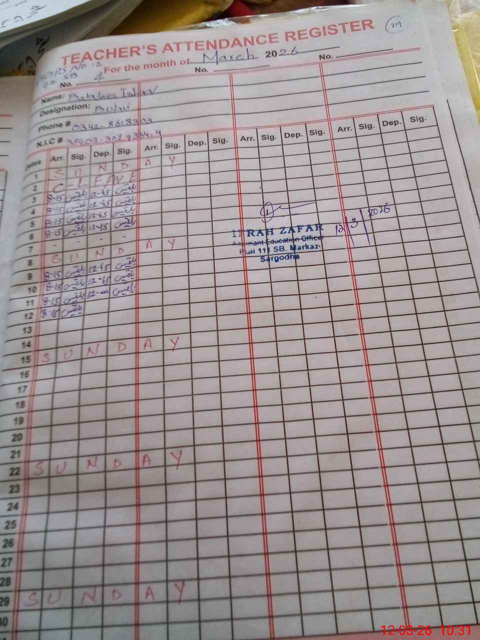 | Name: Fa**** Ta**** Designation: (School Headmaster's/Headmistress's) PST Phone/Cell Number: 03**** |