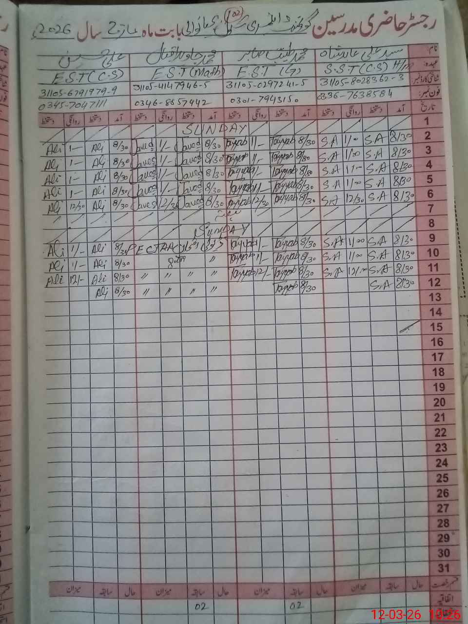 | Name: Sy**** Al**** Ab**** Sh**** Designation: (School Headmaster's/Headmistress's) Sst Phone/Cell Number: 03**** |