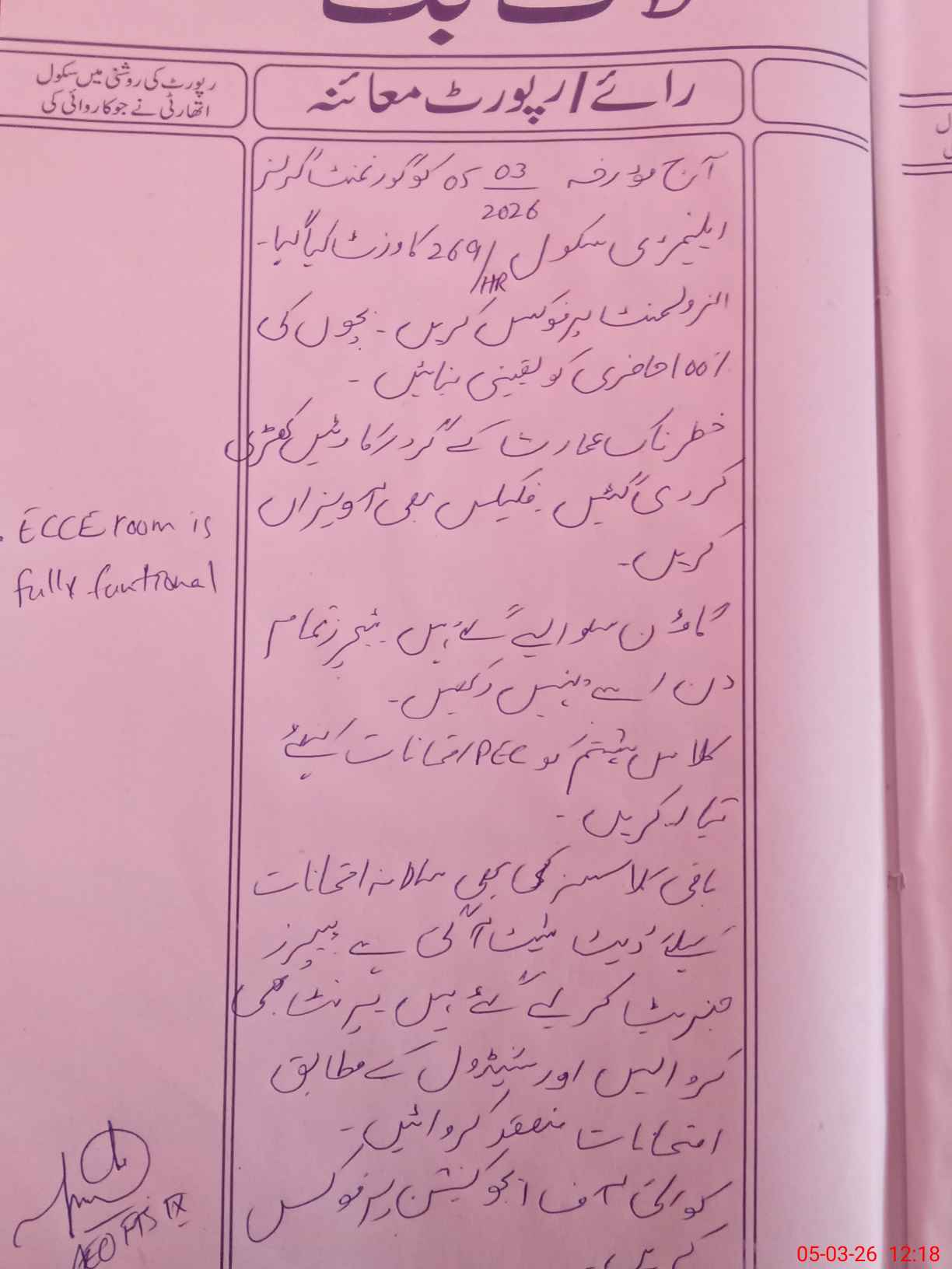 | EMIS Code: 31130050 | Name of School: GGES CHAK 269/HR | |||