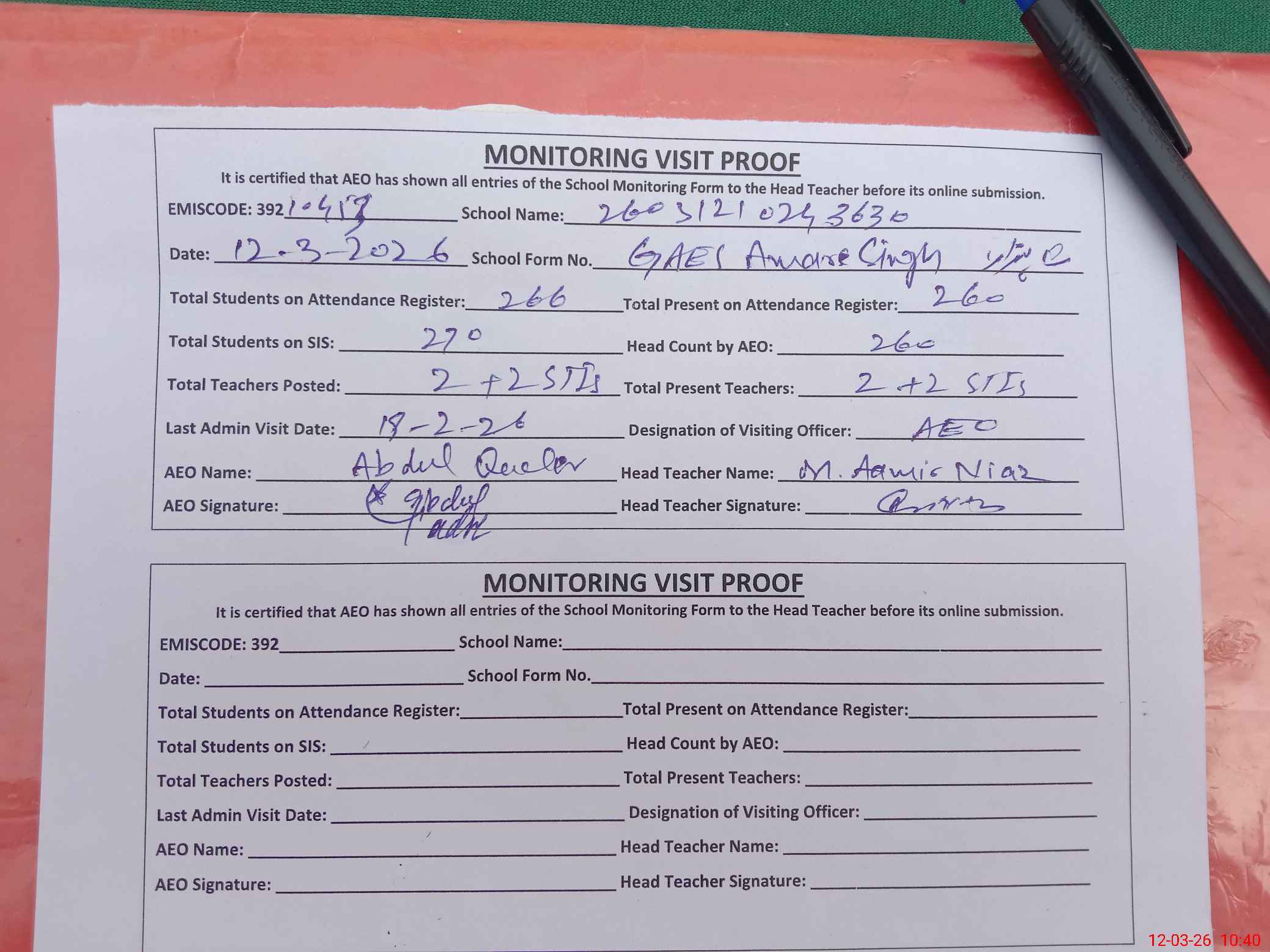 | EMIS Code: 39210453 | Name of School: GPS AMAR SINGH P/O 26/S.P PAKPATTAN | |||