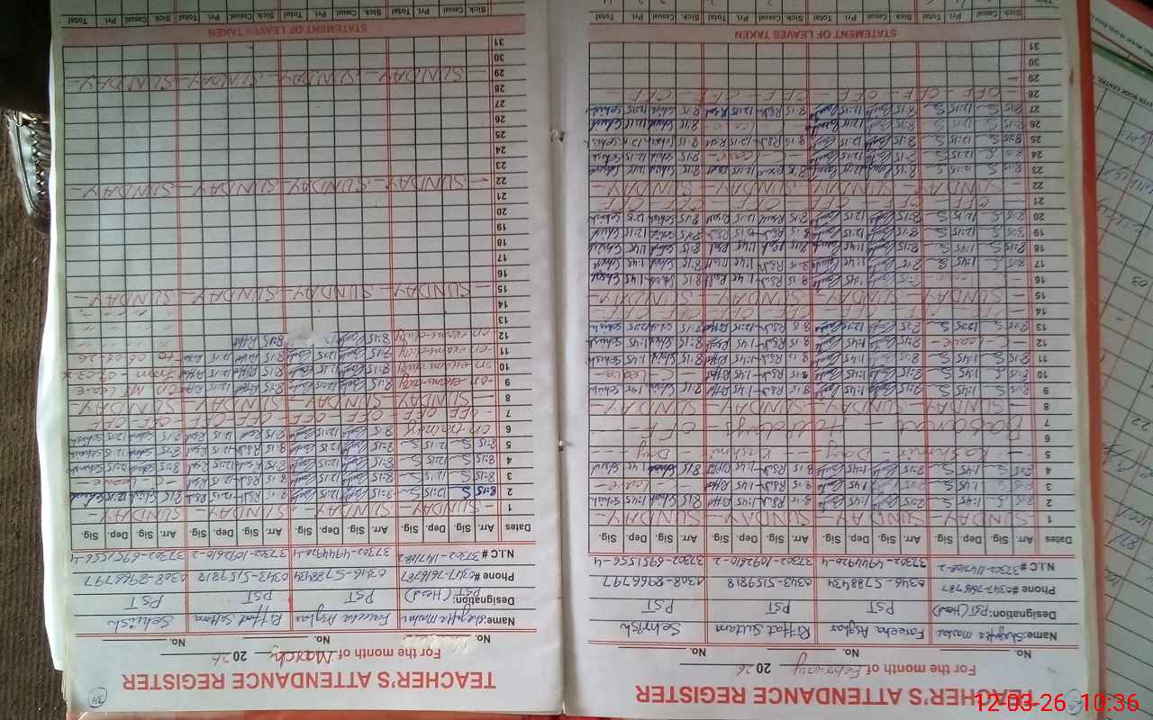 | 37**** | Sh**** Ma**** | PST Arts | Regular | 1 | 0 | 0 | 0 | 0 | 0 | 0 | 0 | 1 | Exam Duty |