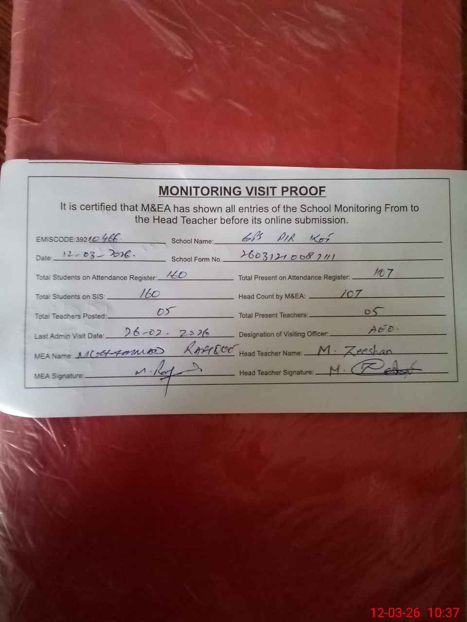 | EMIS Code: 39210466 | Name of School: GPS PIR KOT PAKPATTAN | |||