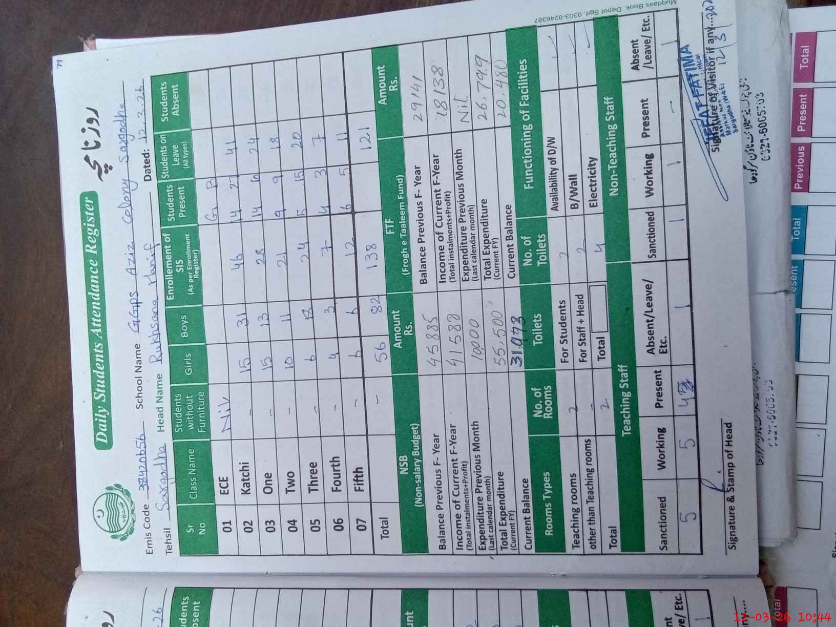| EMIS Code: 38420656 | Name of School: GGPS AZIZ COLONY | |||