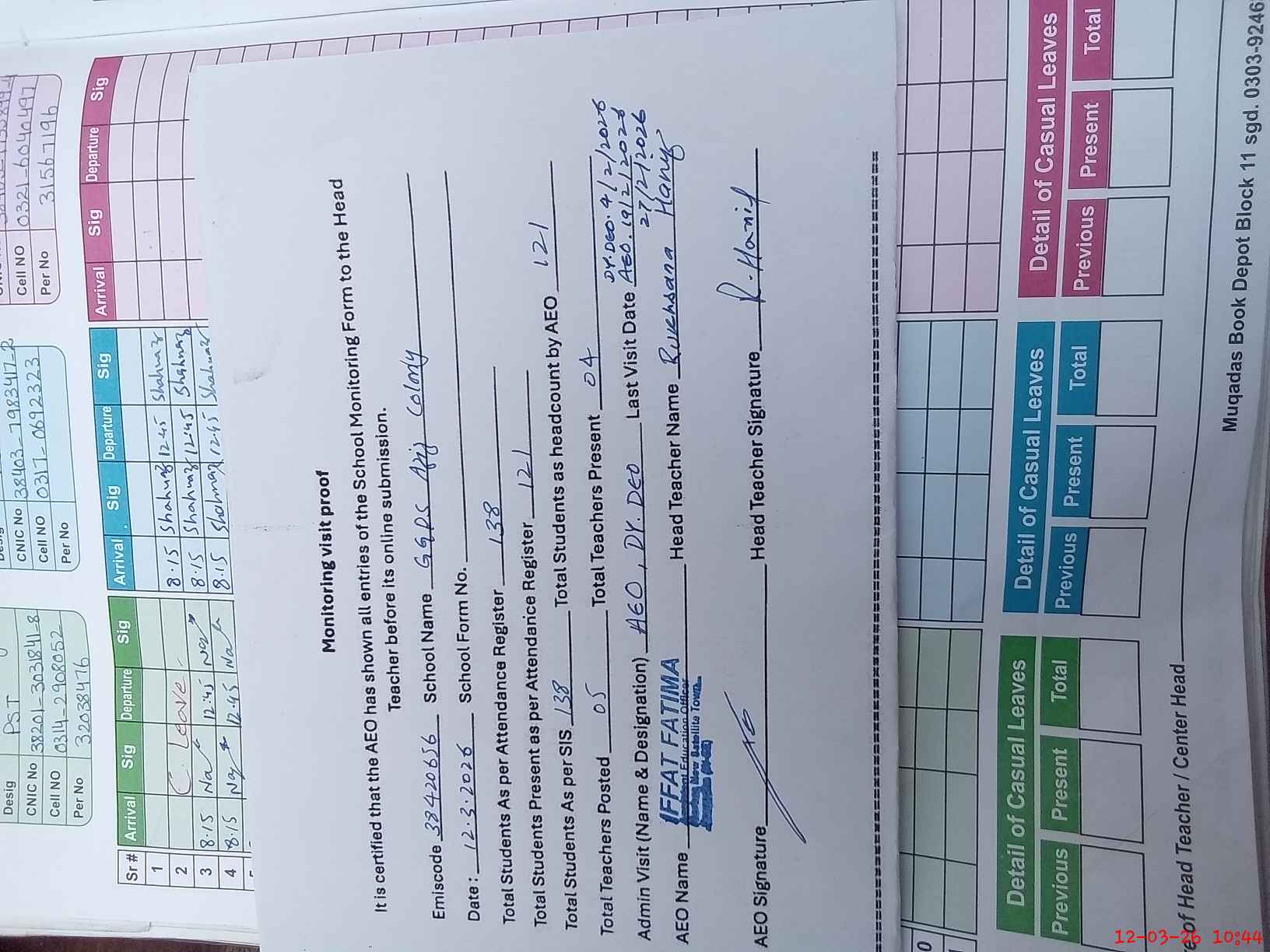 | Name: Ru**** Ha**** Designation: (School Headmaster's/Headmistress's) PST Phone/Cell Number: 03**** |