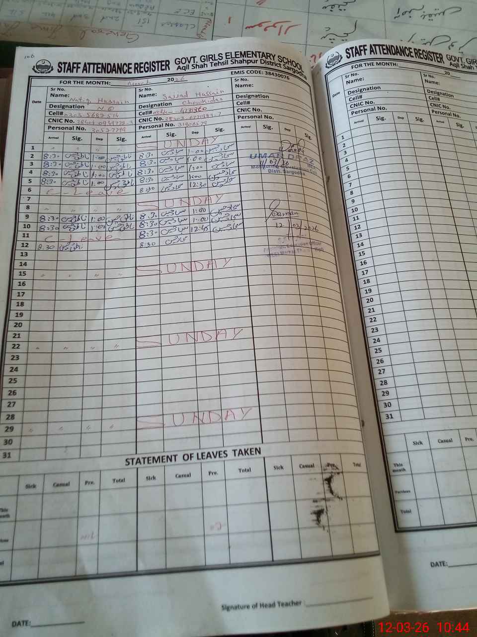 | Name: SH**** PA**** Designation: (School Headmaster's/Headmistress's) SST ART Phone/Cell Number: 03**** |