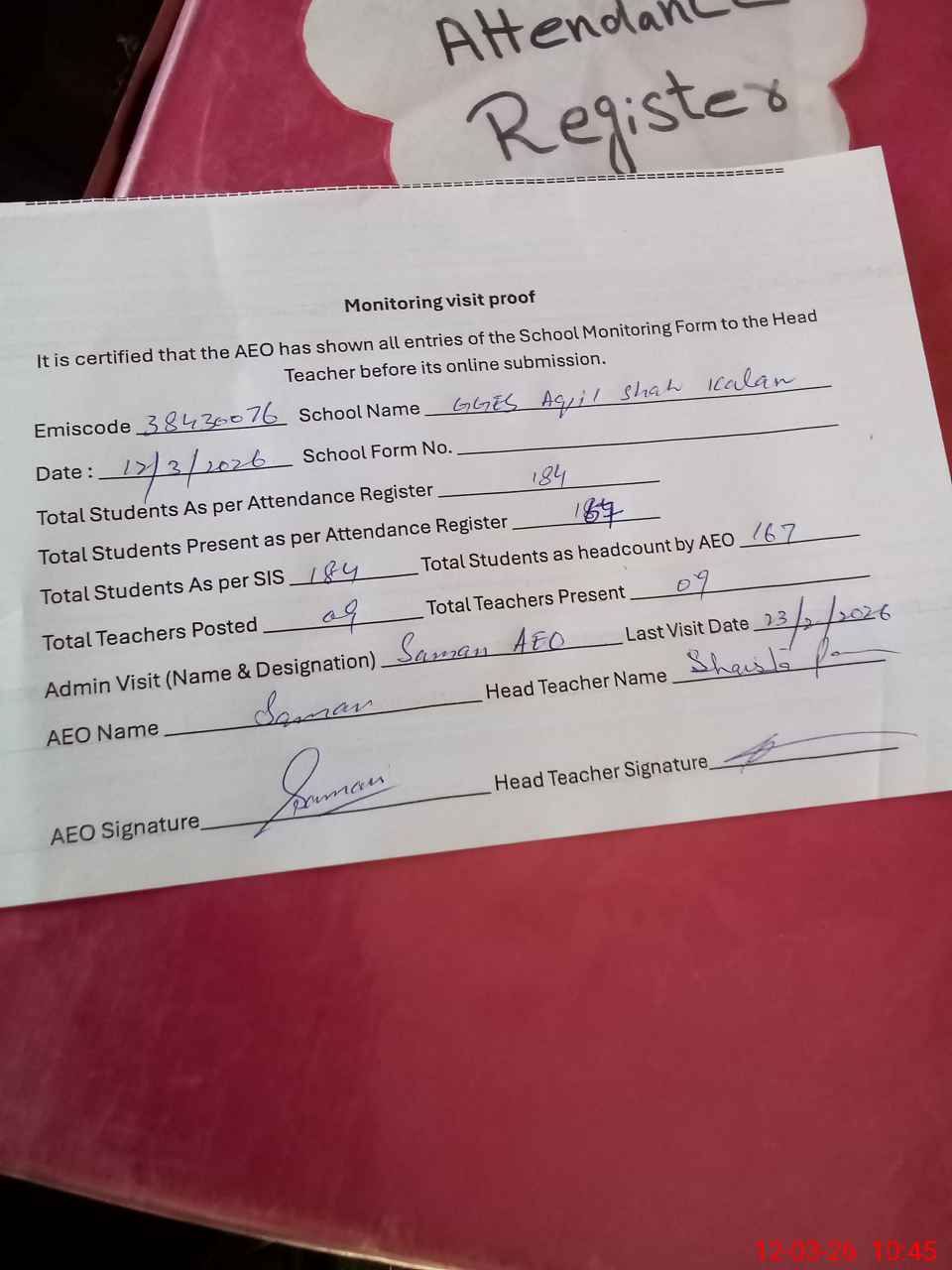| EMIS Code: 38430076 | Name of School: GGES AQIL SHAH KALAN | |||