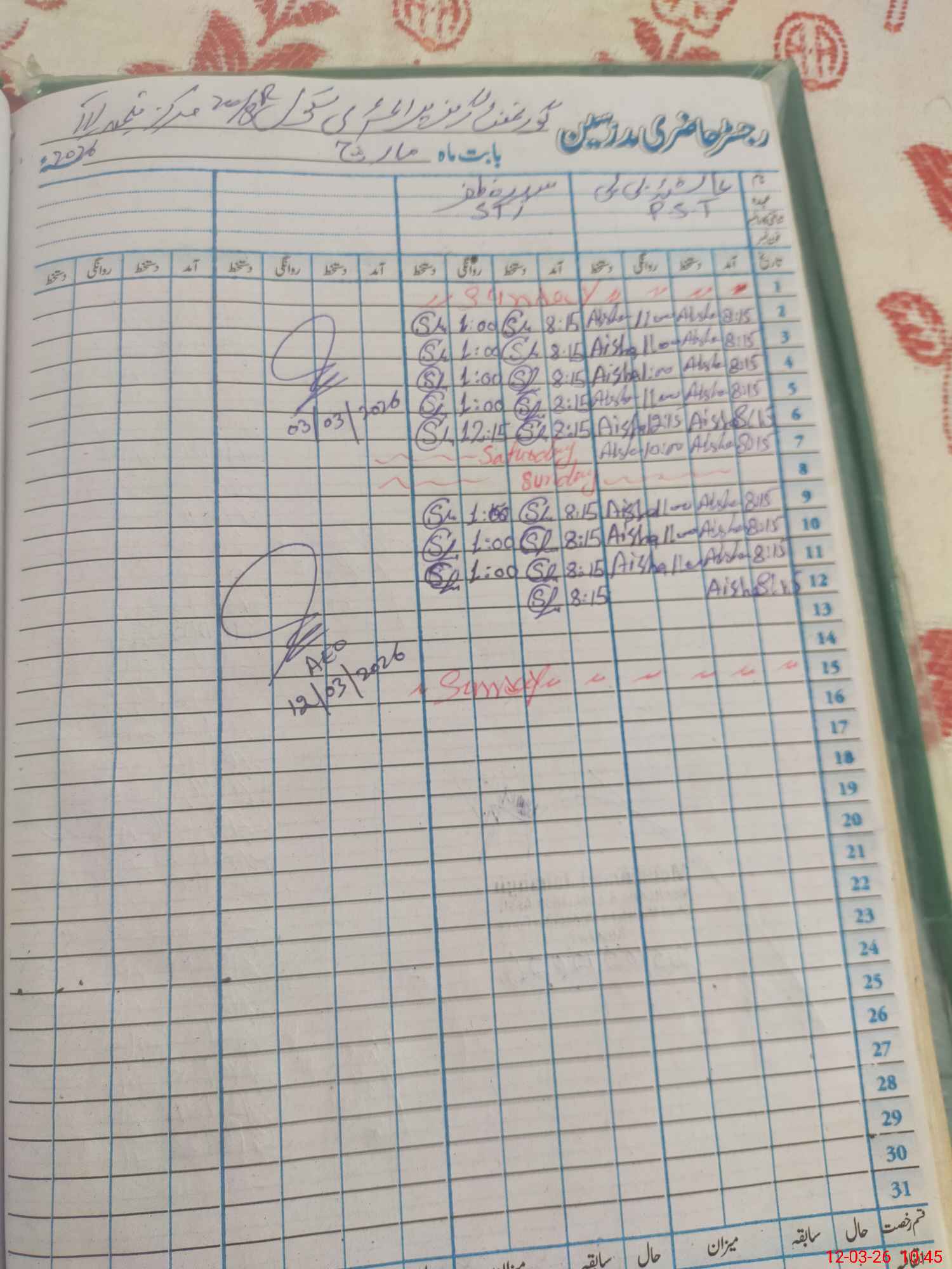 | Name: Ay**** Bi**** Designation: (School Headmaster's/Headmistress's) PST Phone/Cell Number: 03**** |